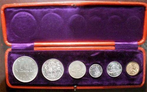 1937 SPECIMEN SET. Matte (Charlton # 9d) Includes 6 coins; 1 cent thru dollar. The small cent is red while the silver coins mostly brilliant. Grades vary from SP-60 to SP63. The box is slightly damaged. Should be viewed! Sold as is, no return.