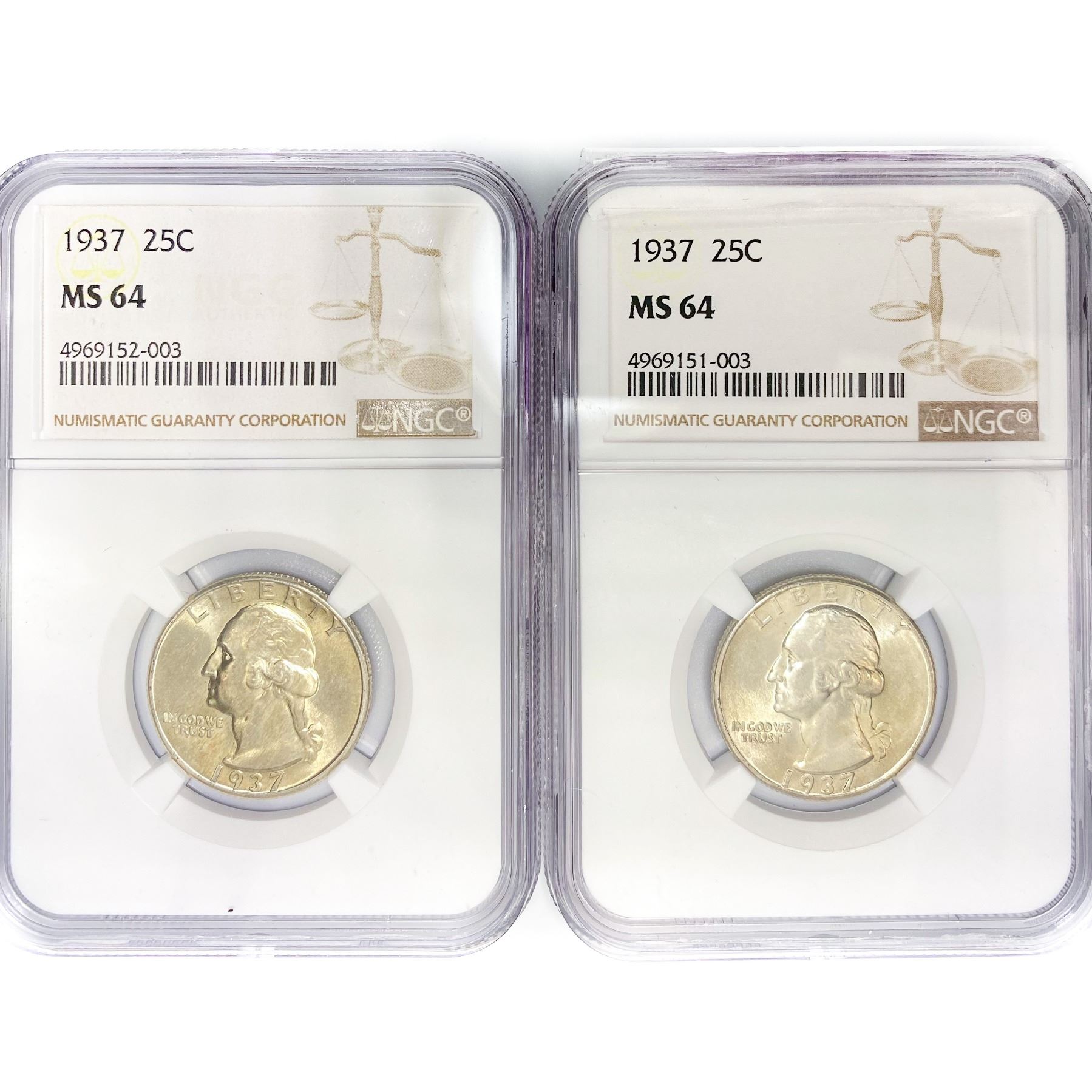 1937 Set (2) Washington Silver Quarter NGC MS64
