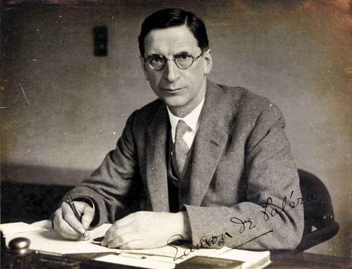 Signed photograph of Eamon De Valera at the desk of An Taoiseach, taken during the period of the 1937 general election. Published on the cover of the June 1937 Fianna Fáil Bulletin. See also lot 248