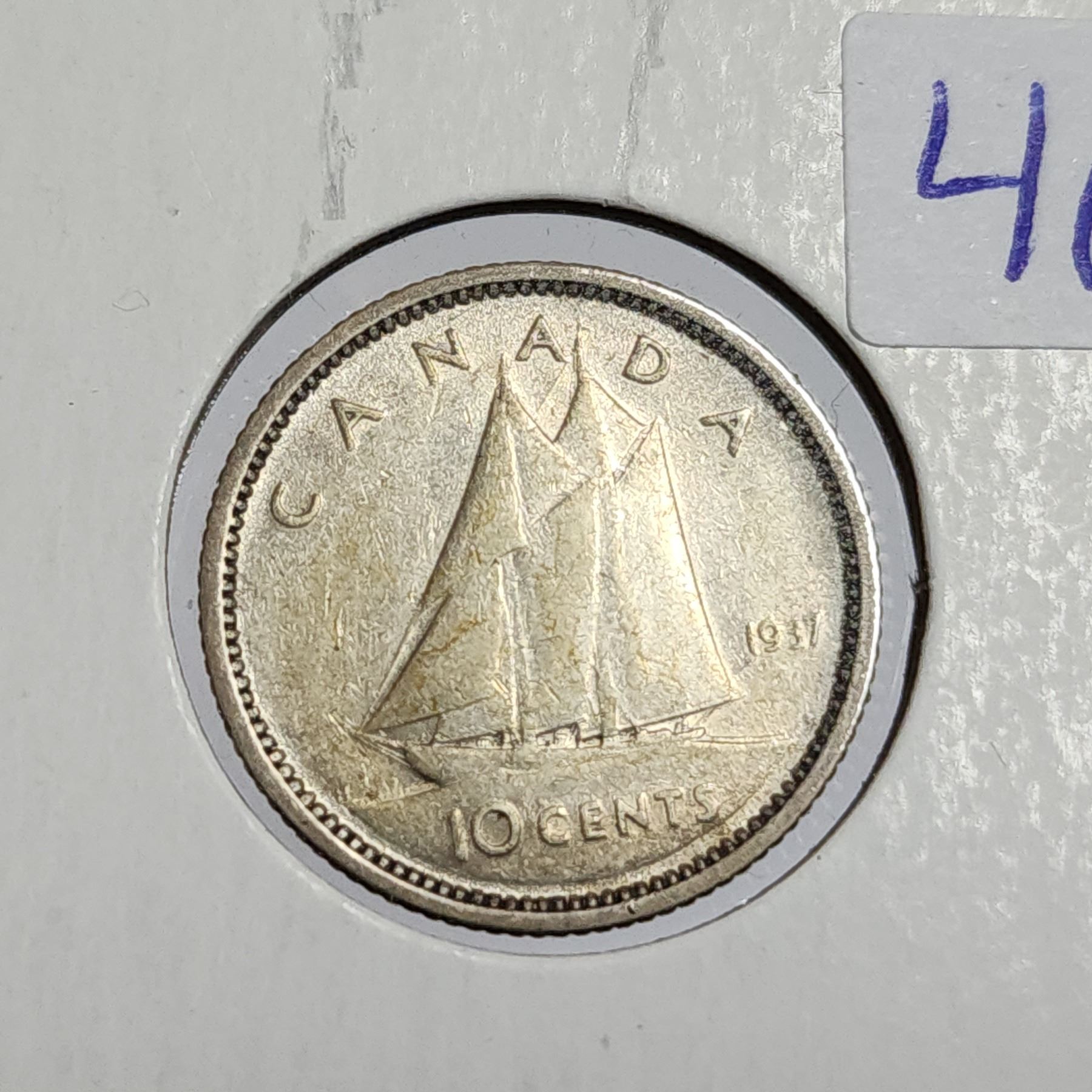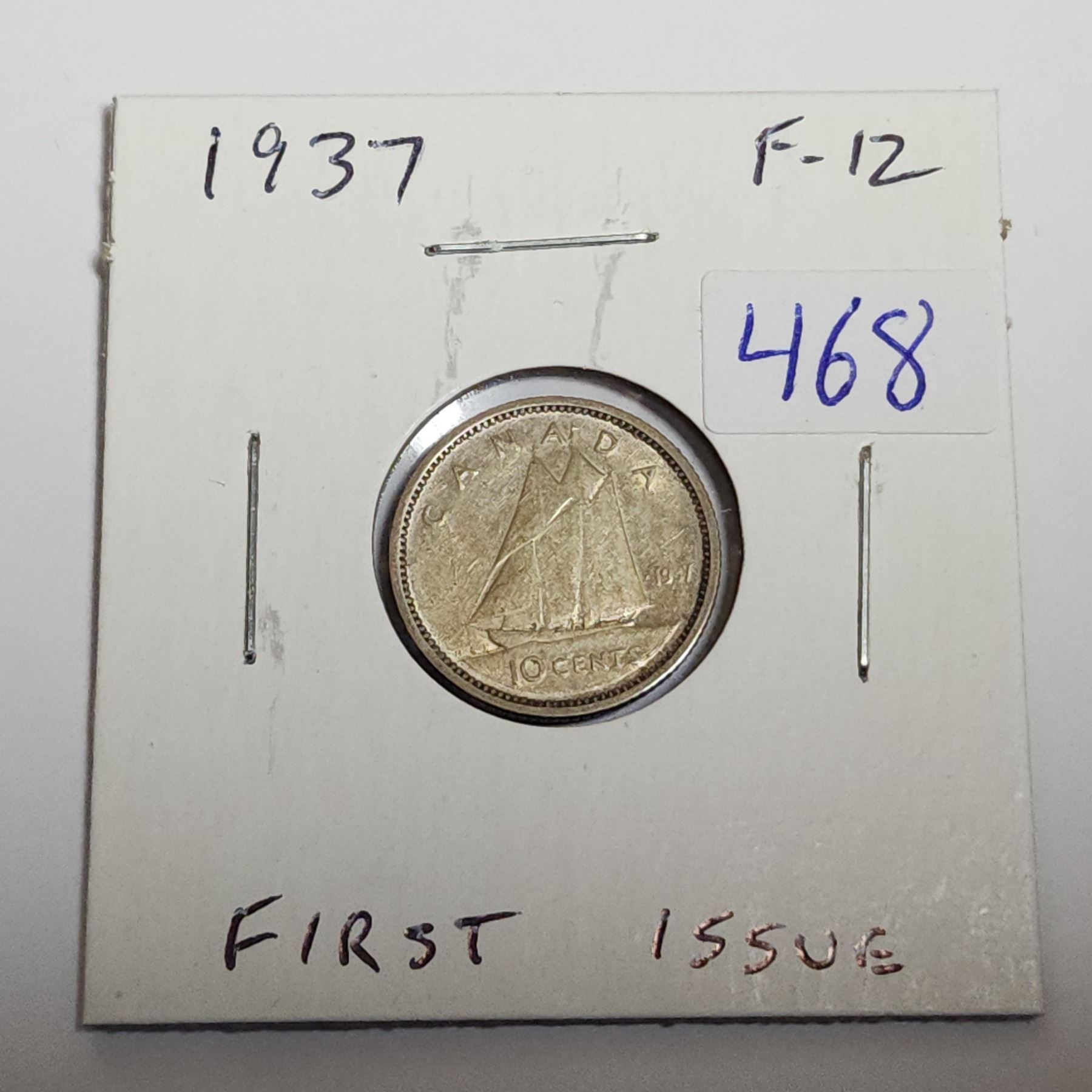 1937 Silver 10 Cents. First issue of King George VI. F-12.