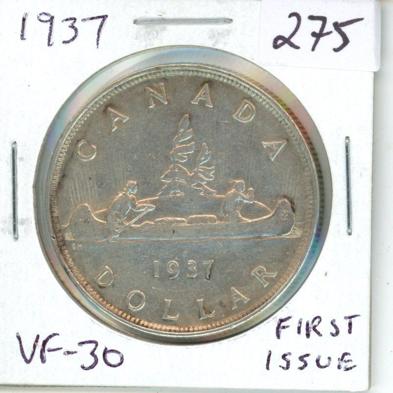 1937 Silver Dollar. First issue of King George VI. Key Date. Mintage of 241,002. VF-30.