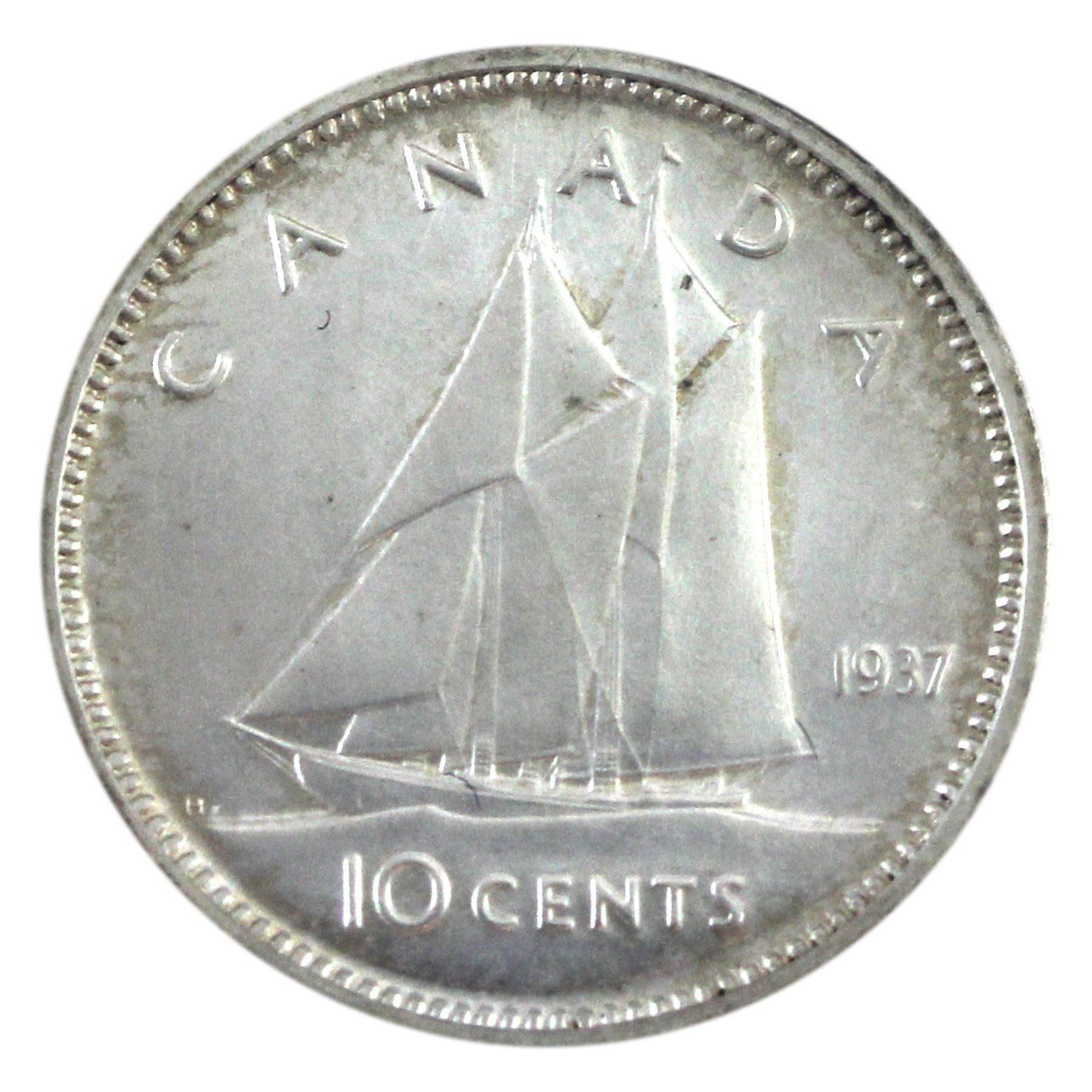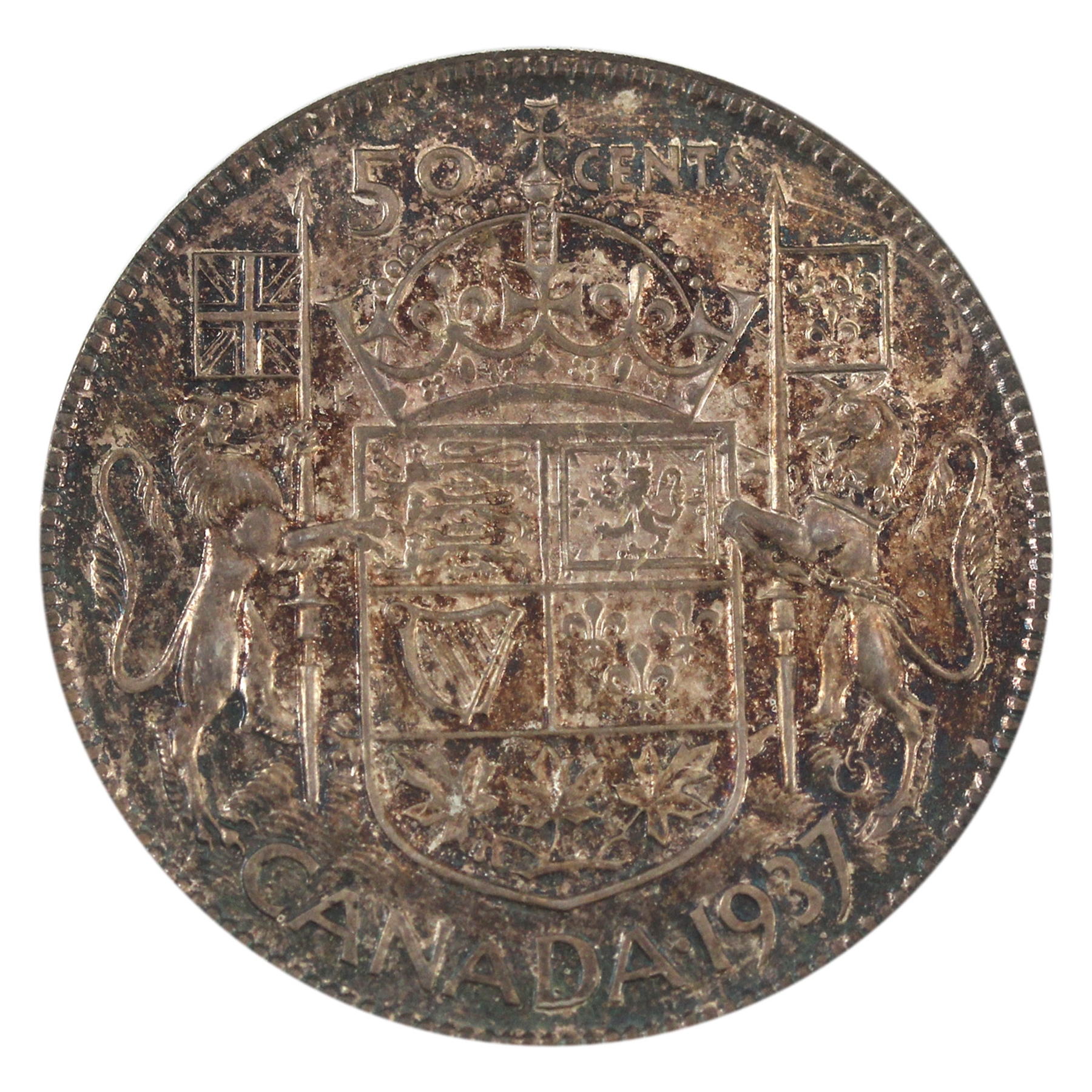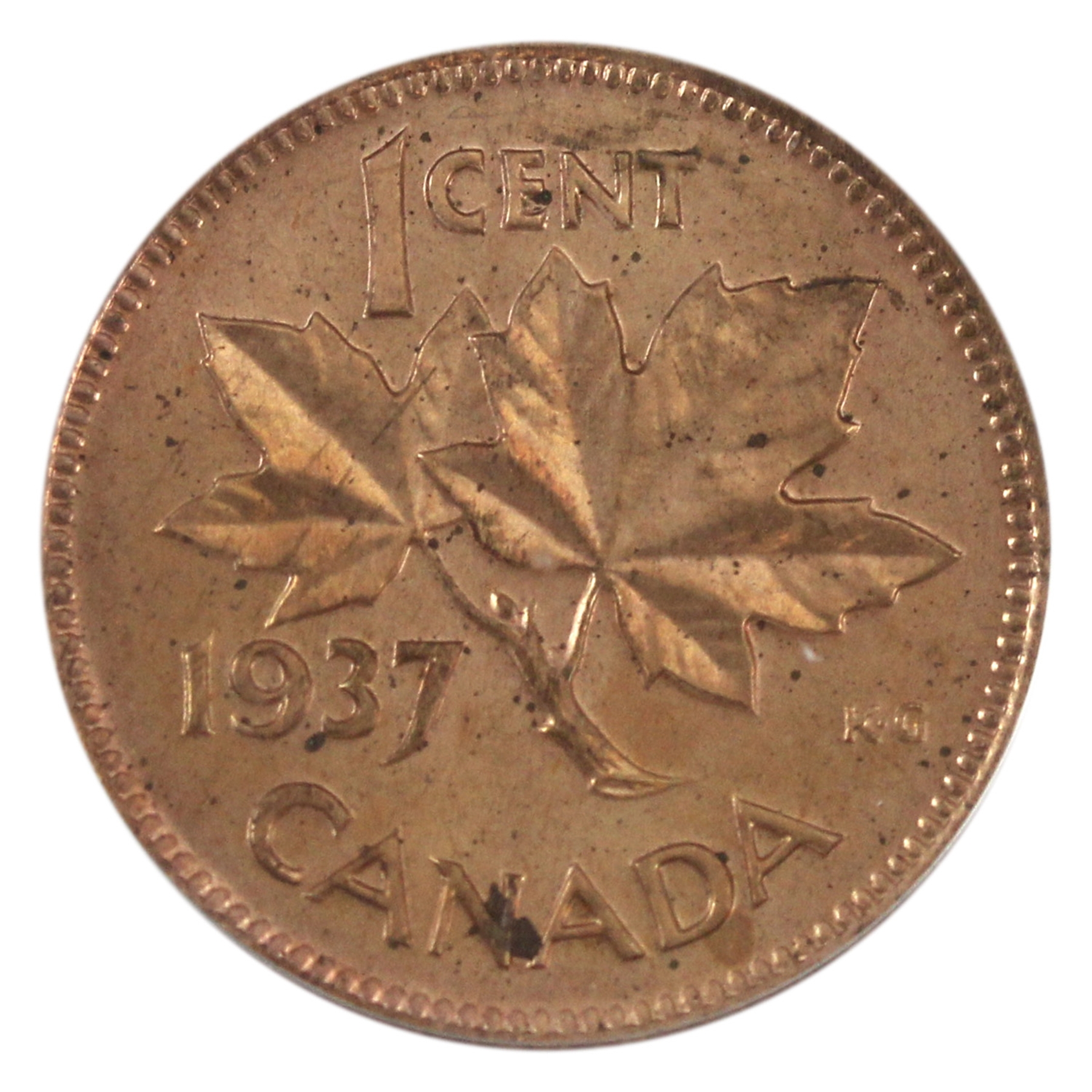 INCLUDES: $1 ICCS SP64, 50-cent PCGS SP65, 25-cent ICCS SP66, 10-cent ICCS SP65, 5-cent ICCS SP65, 1-cent PCGS SP65 Red. CASE Charlton #9. Red Cardboard with horizontal ridges, crowns and sceptres and in black lettering: Royal Canadian Mint 1937 Ottawa, Canada. Case has aging and wear.