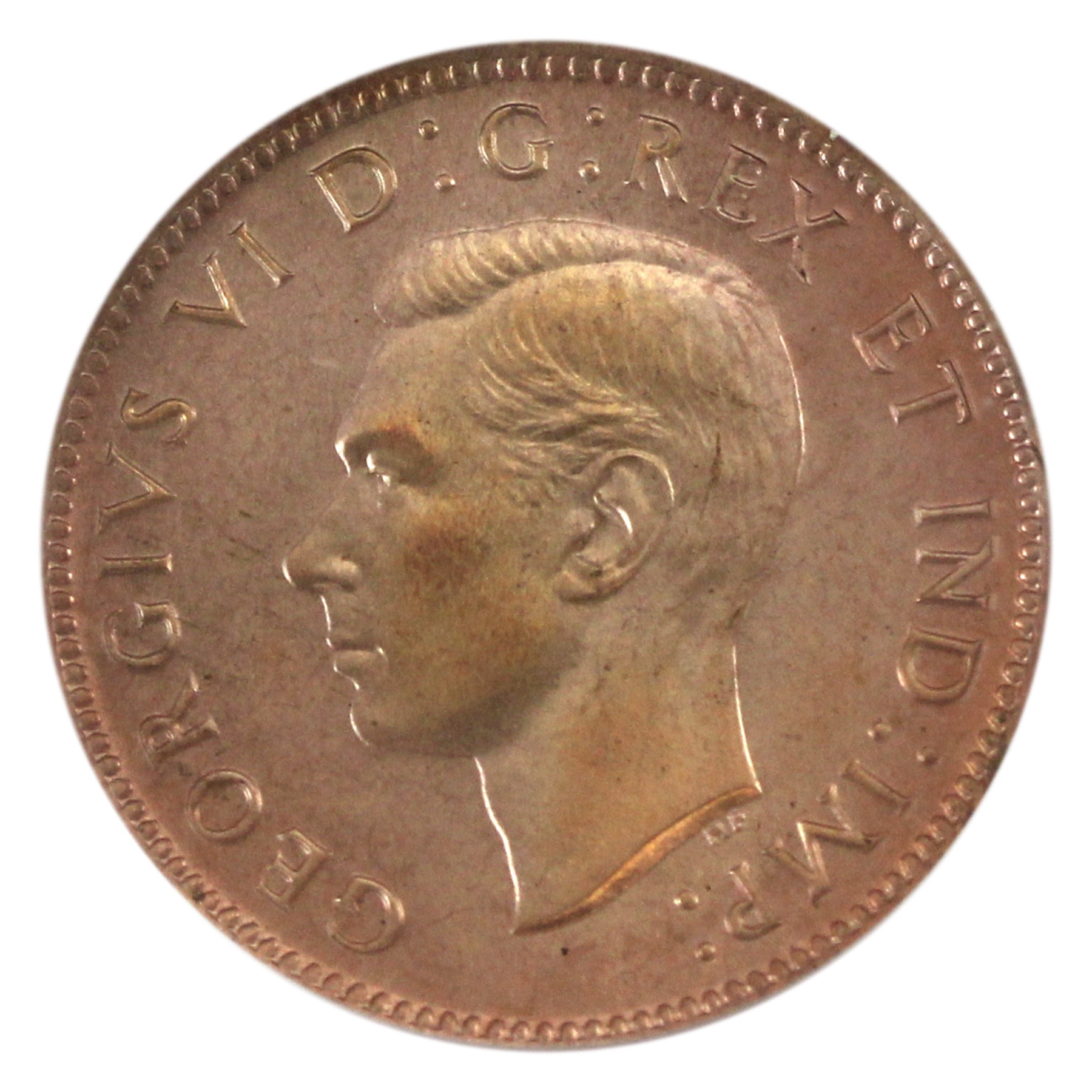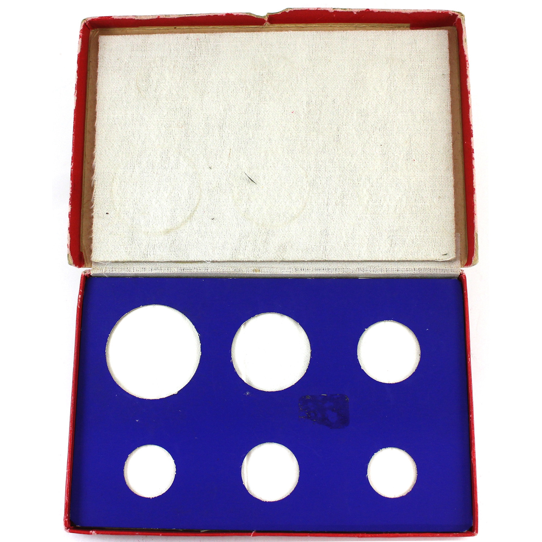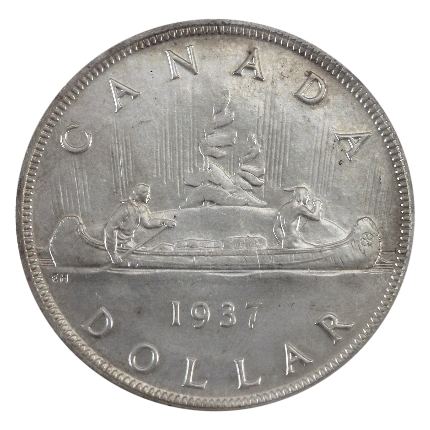 INCLUDES: $1 ICCS SP64, 50-cent PCGS SP65, 25-cent ICCS SP66, 10-cent ICCS SP65, 5-cent ICCS SP65, 1-cent PCGS SP65 Red. CASE Charlton #9. Red Cardboard with horizontal ridges, crowns and sceptres and in black lettering: Royal Canadian Mint 1937 Ottawa, Canada. Case has aging and wear.