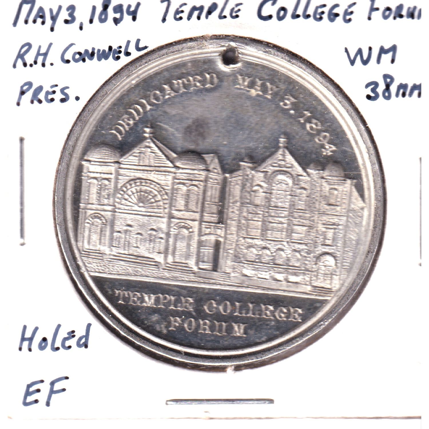 1937 Temple College Forum R.H. Conwell Pres. 38mm Extra Fine