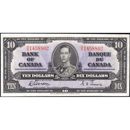 1937 Ten Dollars, Gordon-Towers, BC-24b, Serial Number R/D1458802, Uncirculated