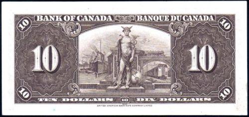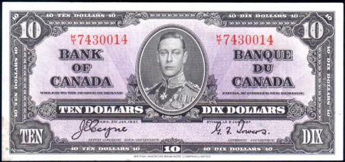 1937 Ten Dollars Coyne-Towers BC-24c, serial number K/T7430014, AU-Uncirculated
