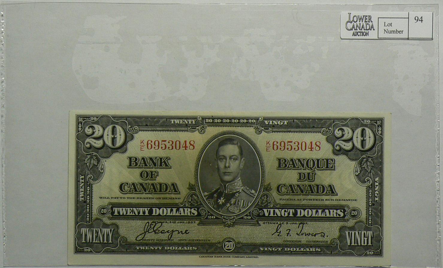 1937, Twenty Dollars, BC25c, UNC, Coyne Towers, serial K/E6953048