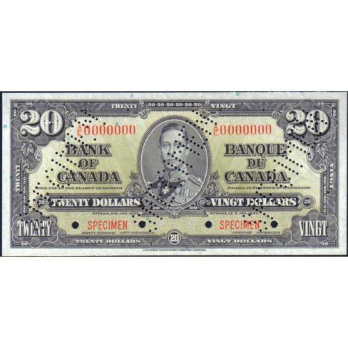 1937 Twenty Dollars Specimen, BC-25S, Serial Number A/E0000000, PMG Choice Uncirculated-64. A near perfectly centered example