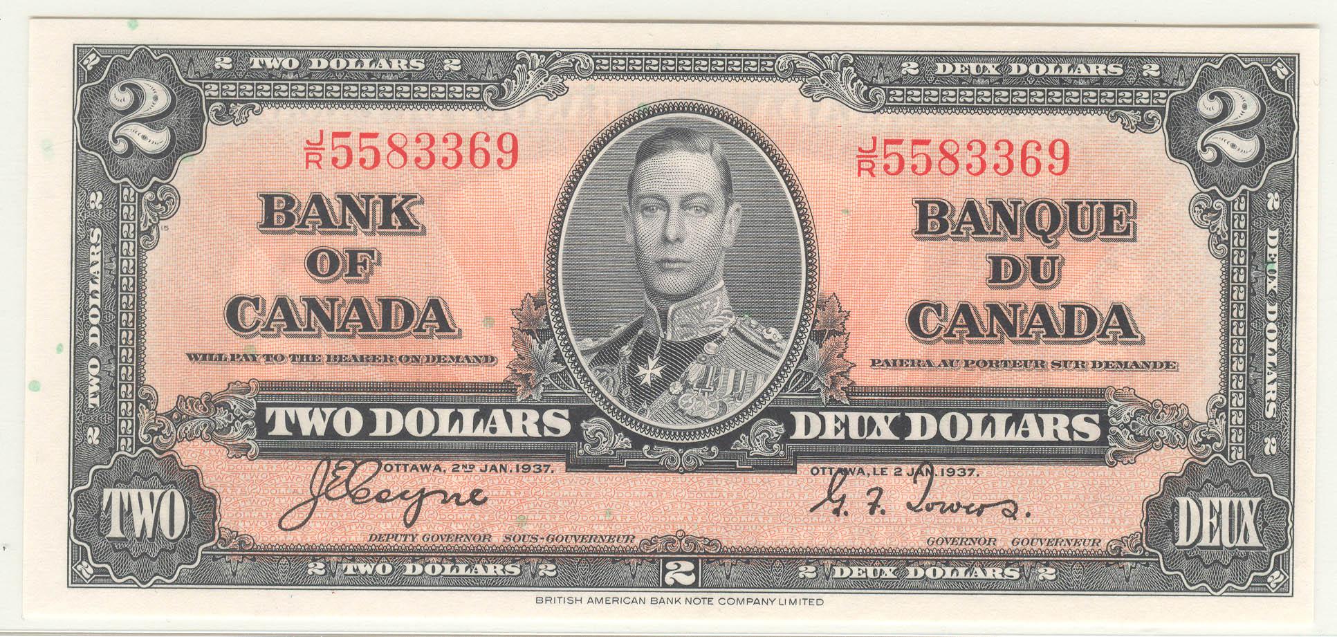 1937 Two Dollars, BC-22c, CCGS UNC-63, Coyne Towers, serial J/R5583369.