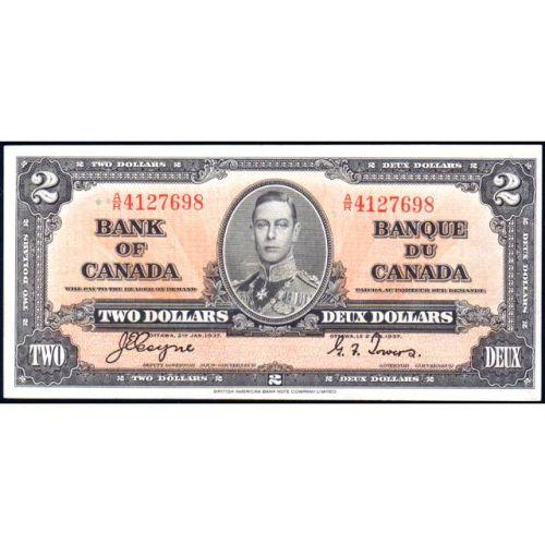 1937 Two Dollars, Coyne-Towers, BC-22c Serial Number A/R4127698, Uncirculated. . A fully original note, a bit off centre toward the right