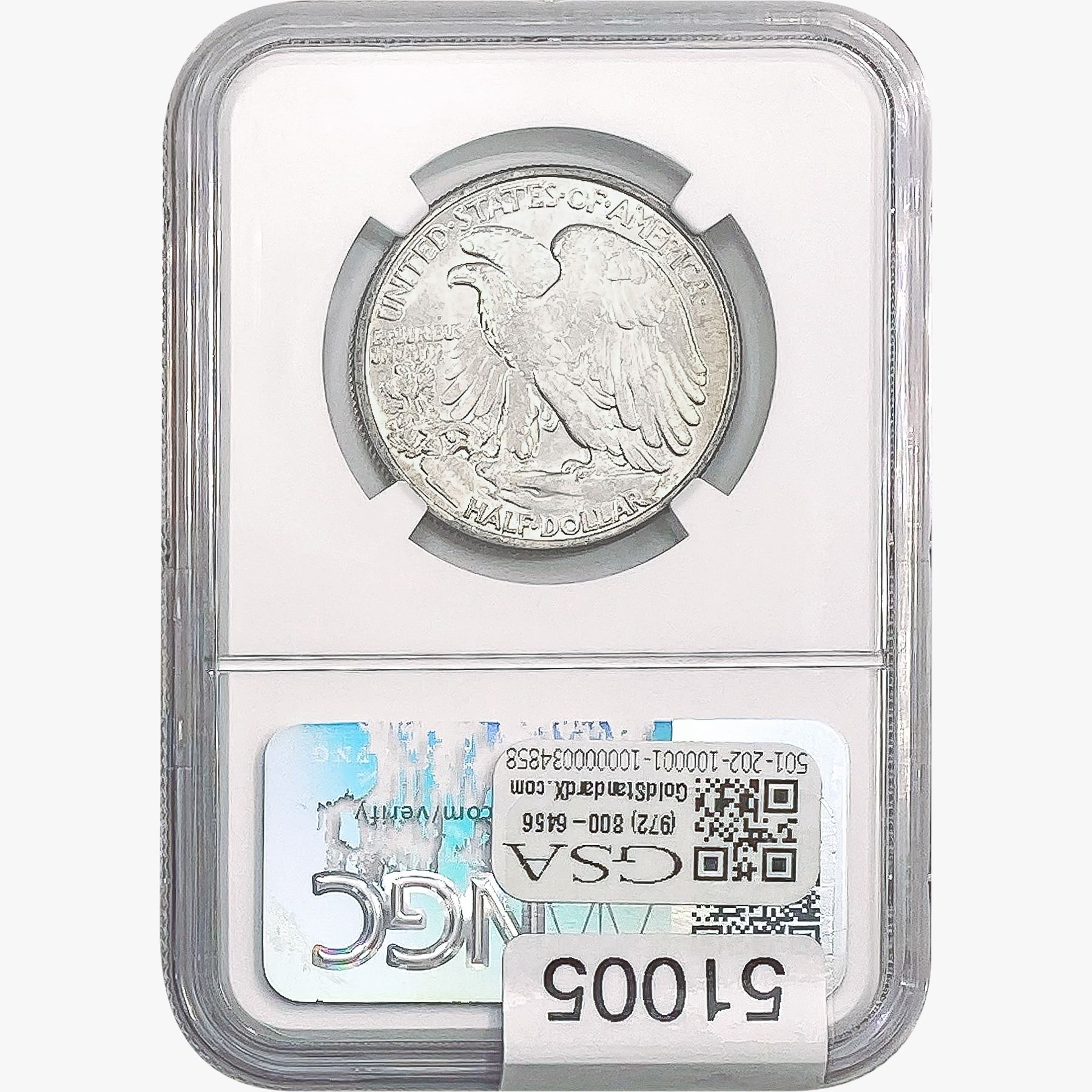 e. Coins sold referencing a third-party grading service are sold “AS IS” without any express or implied warranty, except for a guarantee by GSA that they are genuine. Removal or alteration of the holder, voids all of Bidder’s claims concerning that Product. Certain warranties may be available from the grading services and Bidders are referred to them for further details: Numismatic Guaranty Corporation (NGC), PO Box 4776, Sarasota, FL 34230, www.ngccoin.com/services/writtenguarantee.asp; Professional Coin Grading Services (PCGS), PO Box 9458, Newport Beach, CA 92658, www.pcgs.com/guarantee.html; ANACS, 6555 S. Kenton St., Ste. 303, Englewood, CO 80111; and Independent Coin Grading Co. (ICG), 7901 East Bellview, Ave., Suite 50, Englewood, CO 80111.