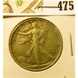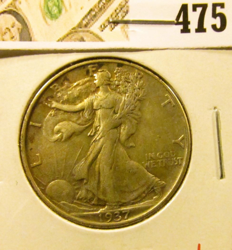 1937 Walking Liberty Half Dollar, XF+, value $18