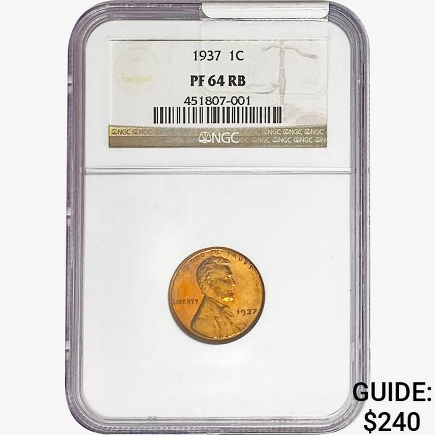 1937 Wheat Cent NGC PF64 RB