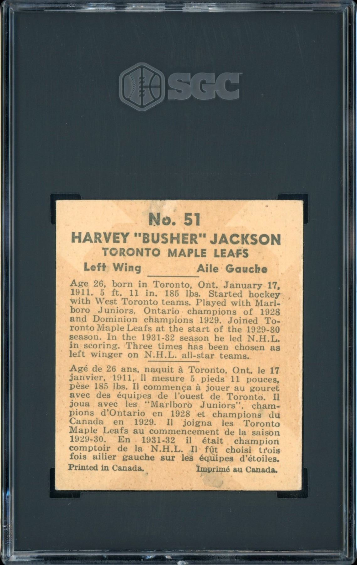 Graded 3 VG by SGC, this is a low pop pre-war Hockey Hall of Famer, 1 of 5, with 3 graded higher, of the only 10 graded by SGC.