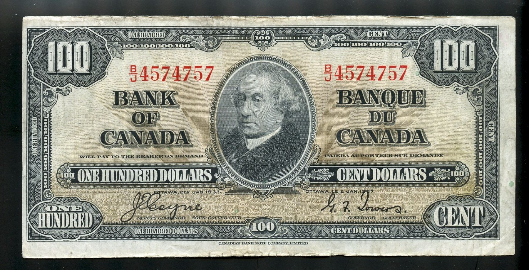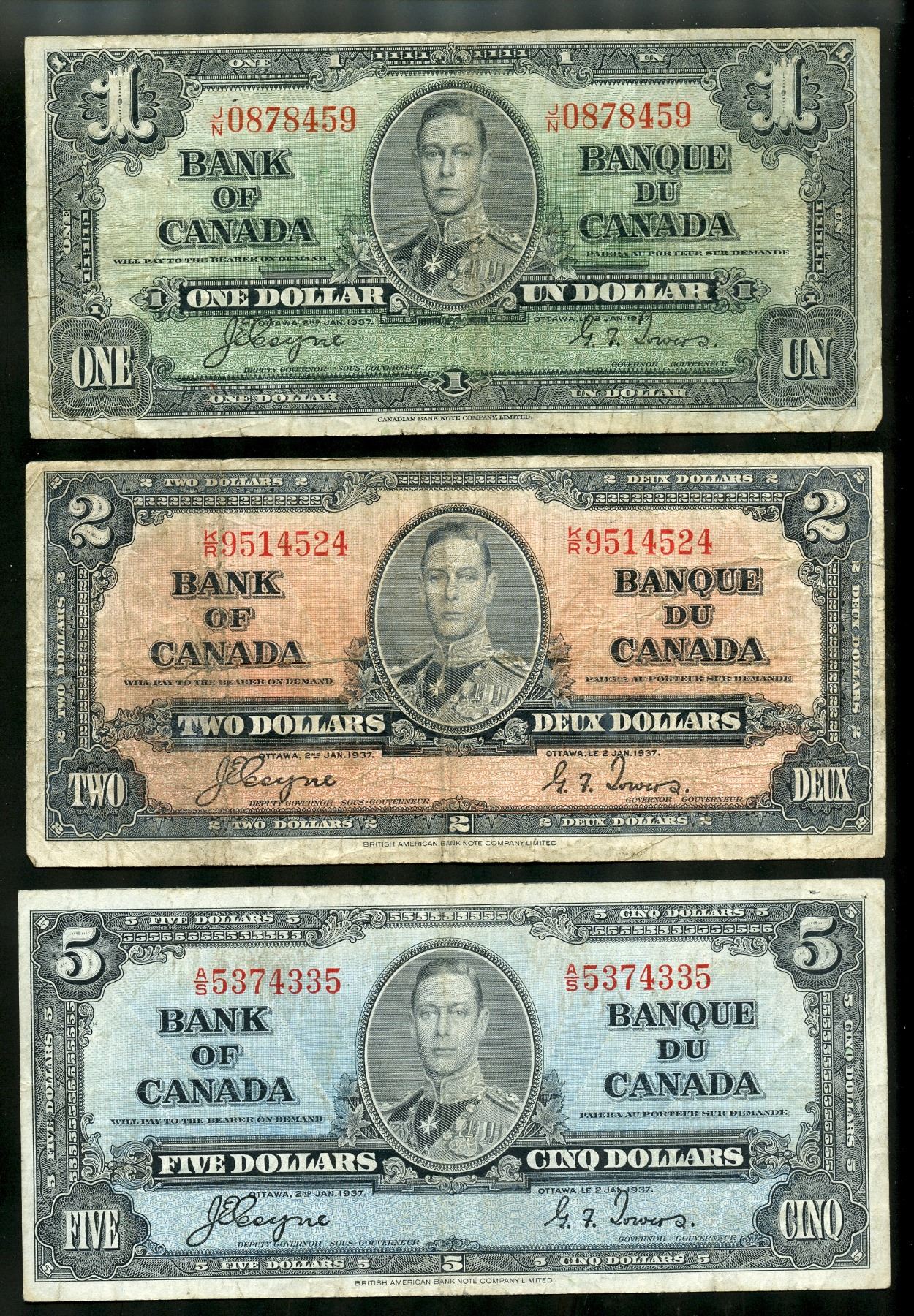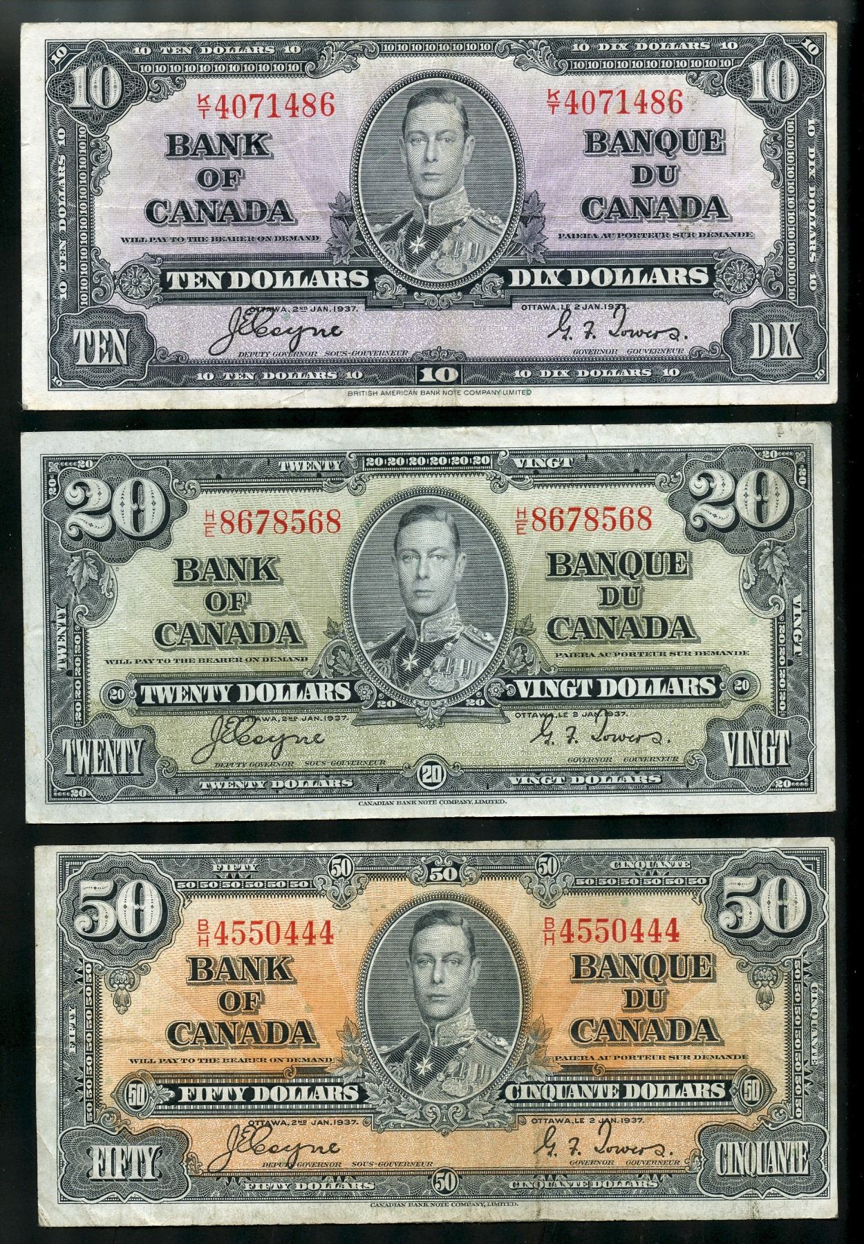 1937 complete banknote set $1 to $100, Coyne/Towers signatures, all F/VF for grades.