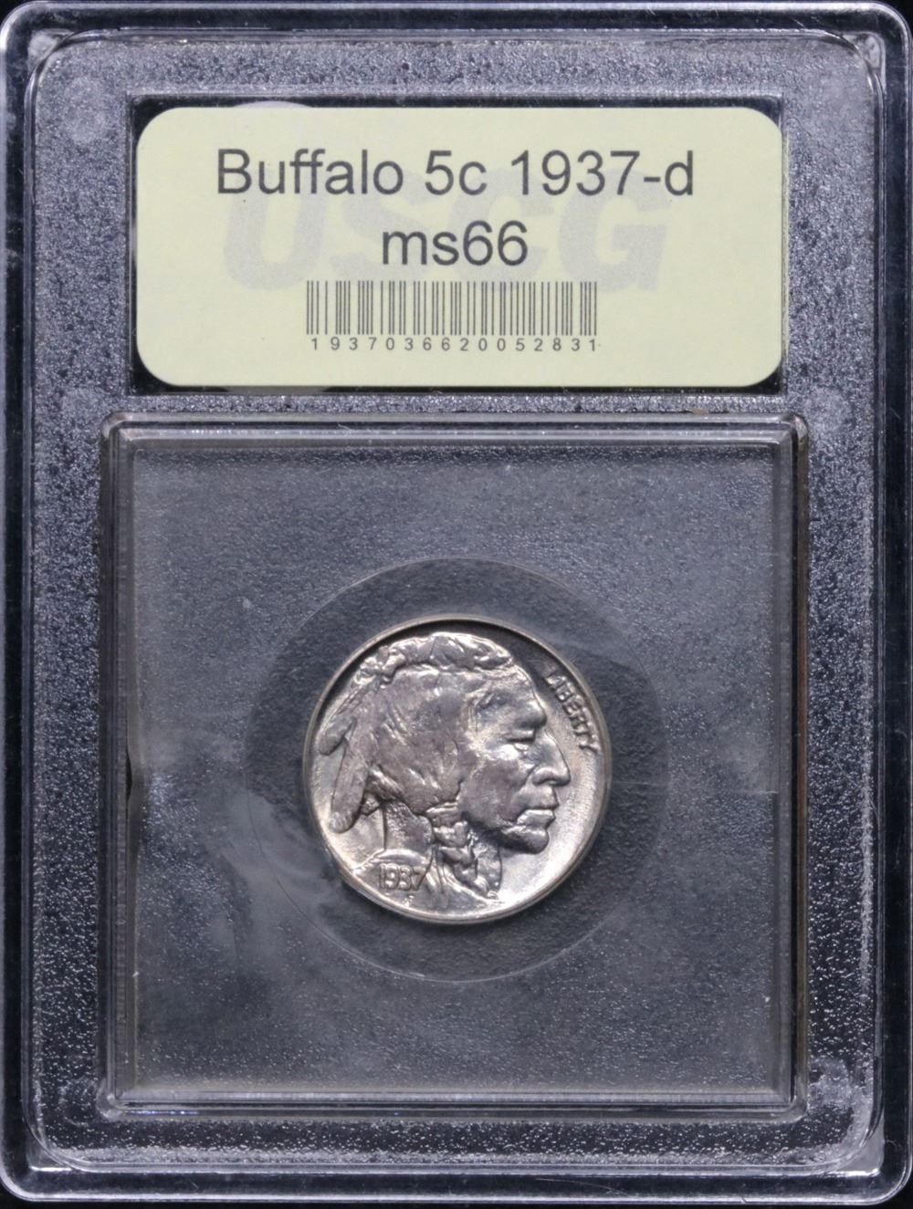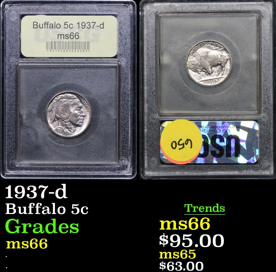 1937-d Buffalo Nickel 5c Graded GEM+ Unc By USCG.