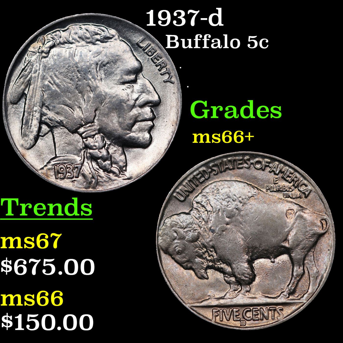 1937-d Buffalo Nickel 5c Graded ms66+ BY SEGS.
