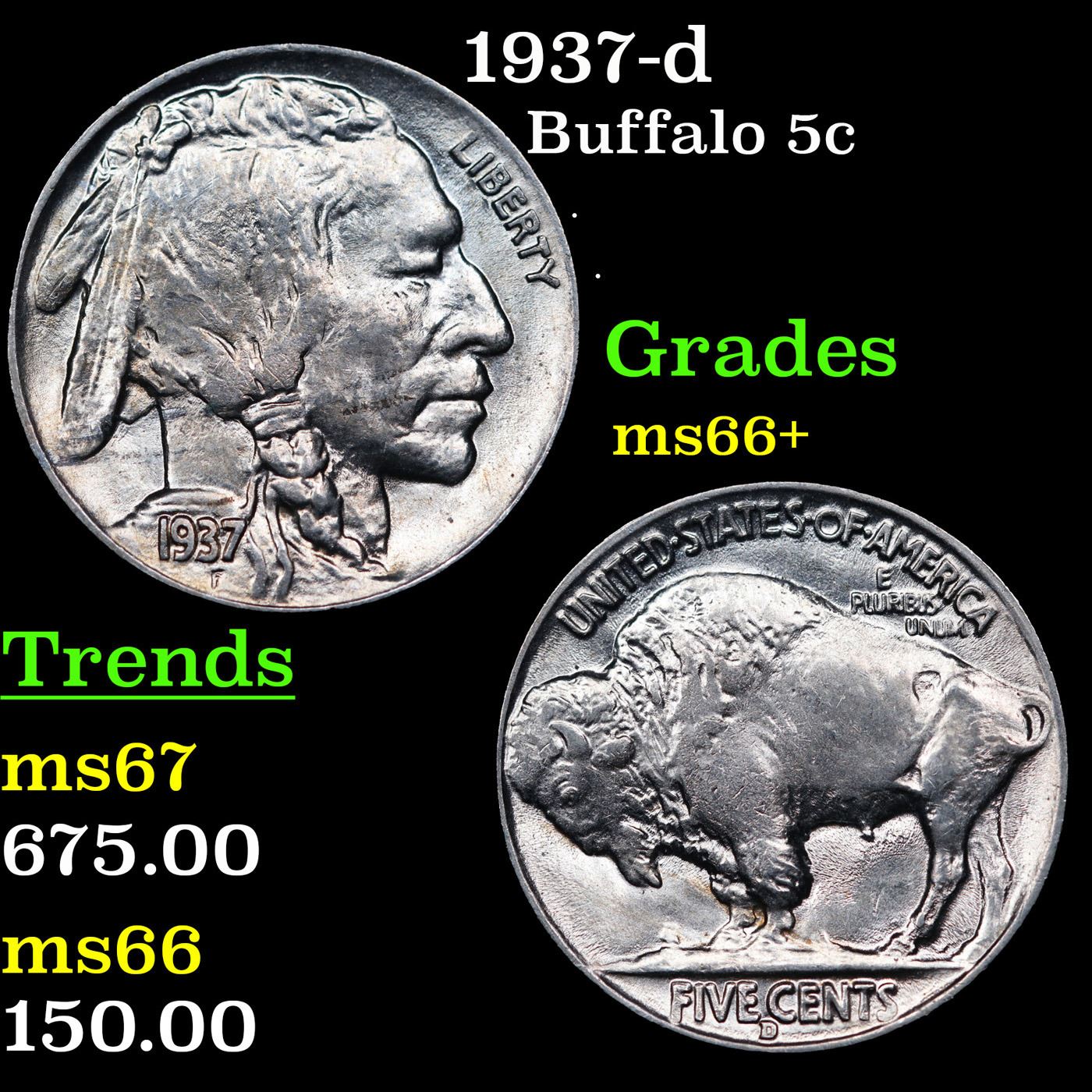 1937-d Buffalo Nickel 5c Graded ms66+ BY SEGS.