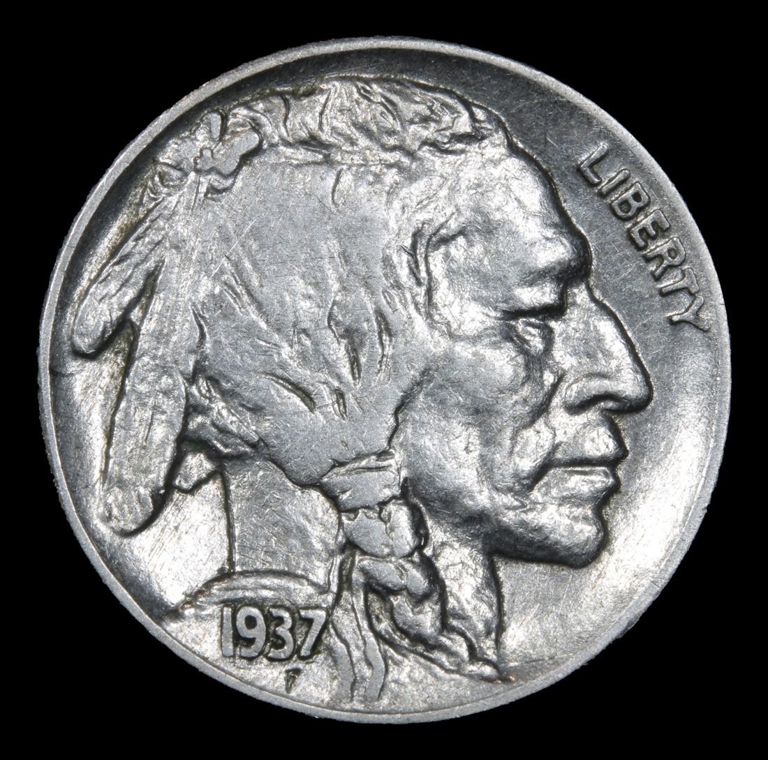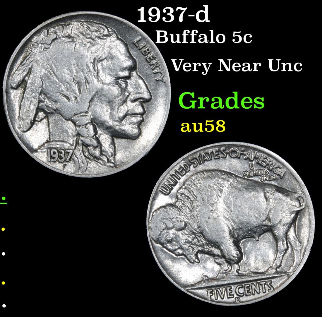 1937-d . Very Near Unc Buffalo Nickel 5c Grades Choice AU/BU Slider.