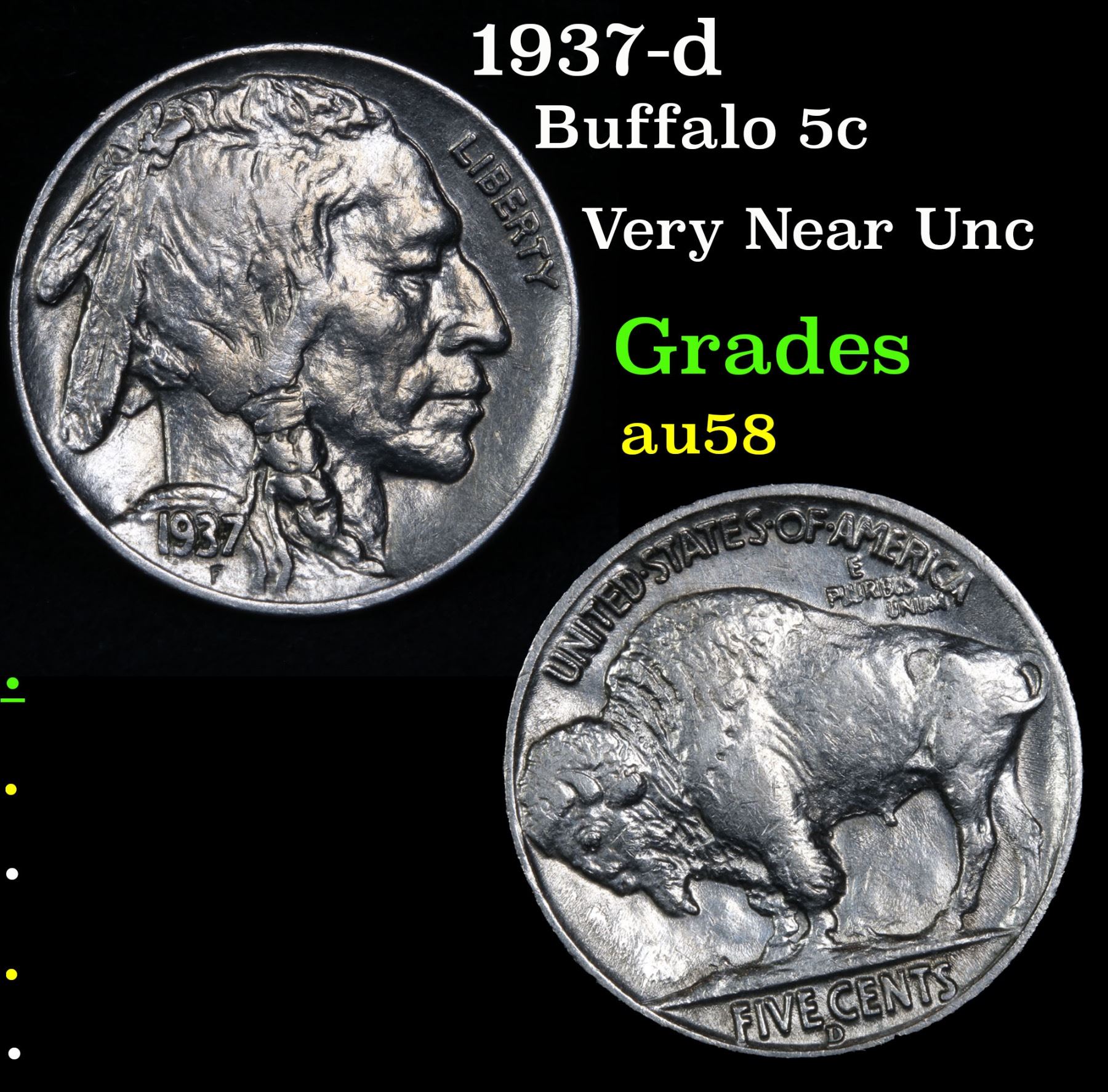 1937-d . Very Near Unc Buffalo Nickel 5c Grades Choice AU/BU Slider.