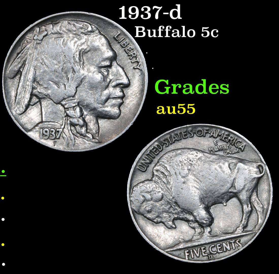 1937-d . . Buffalo Nickel 5c Grades Choice AU.