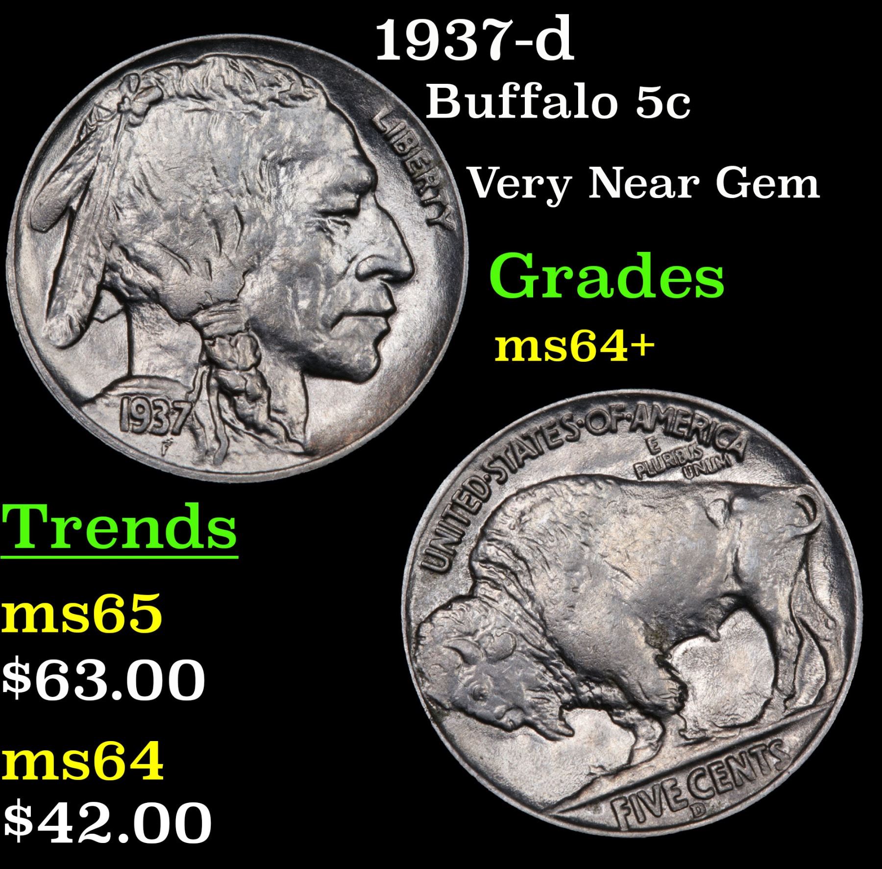 1937-d Buffalo Nickel 5c Grades Choice+ Unc.