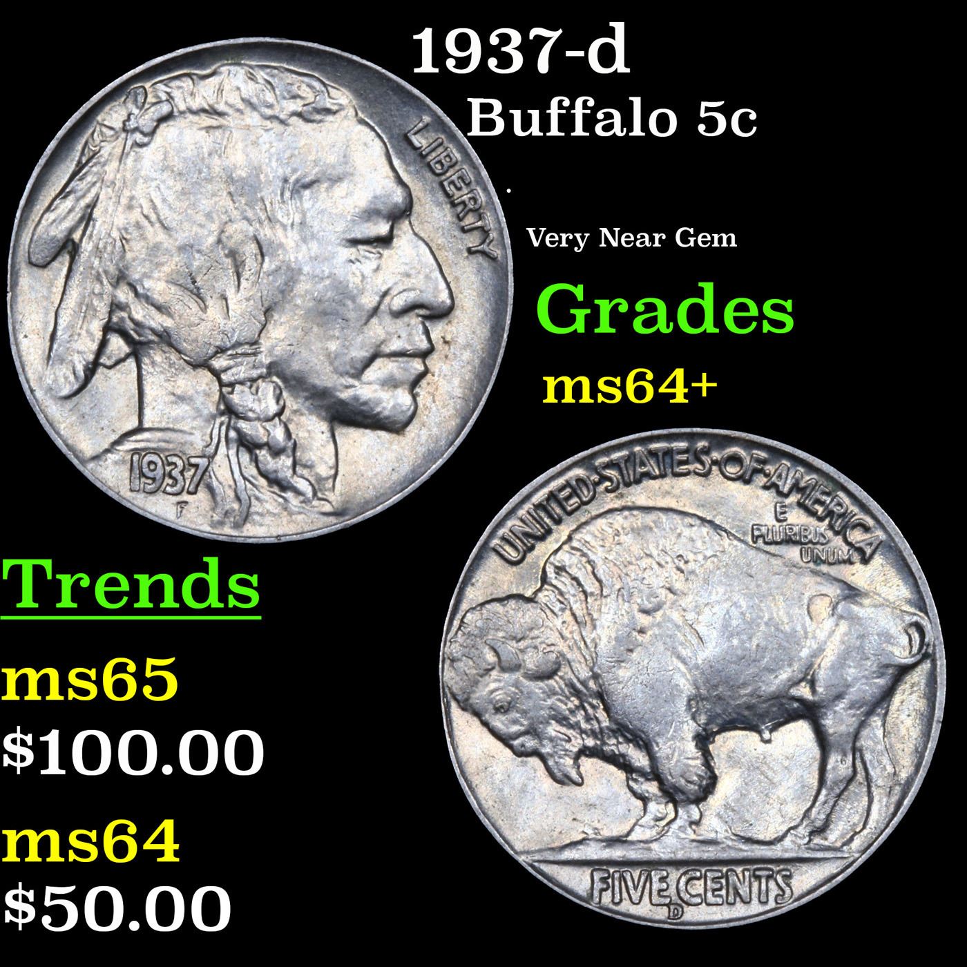 1937-d Buffalo Nickel 5c Grades Choice+ Unc.