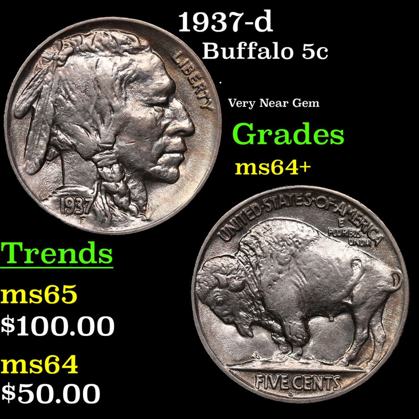 1937-d Buffalo Nickel 5c Grades Choice+ Unc.