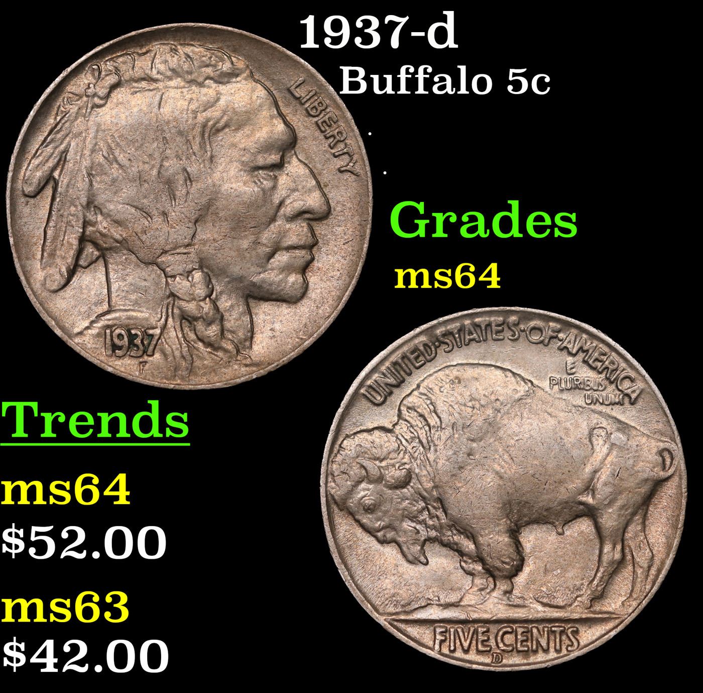 1937-d Buffalo Nickel 5c Grades Choice Unc.