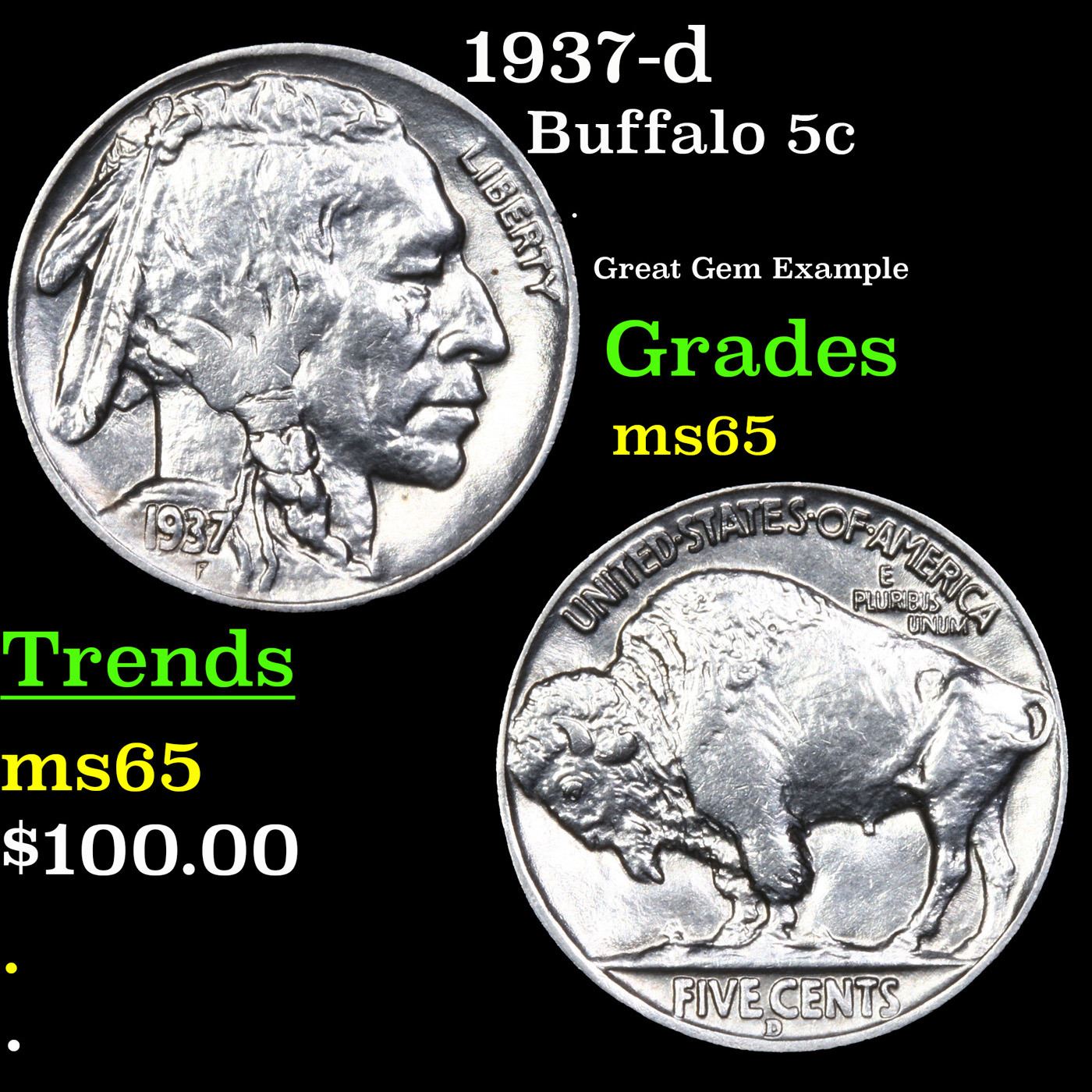 1937-d Buffalo Nickel 5c Grades GEM Unc.