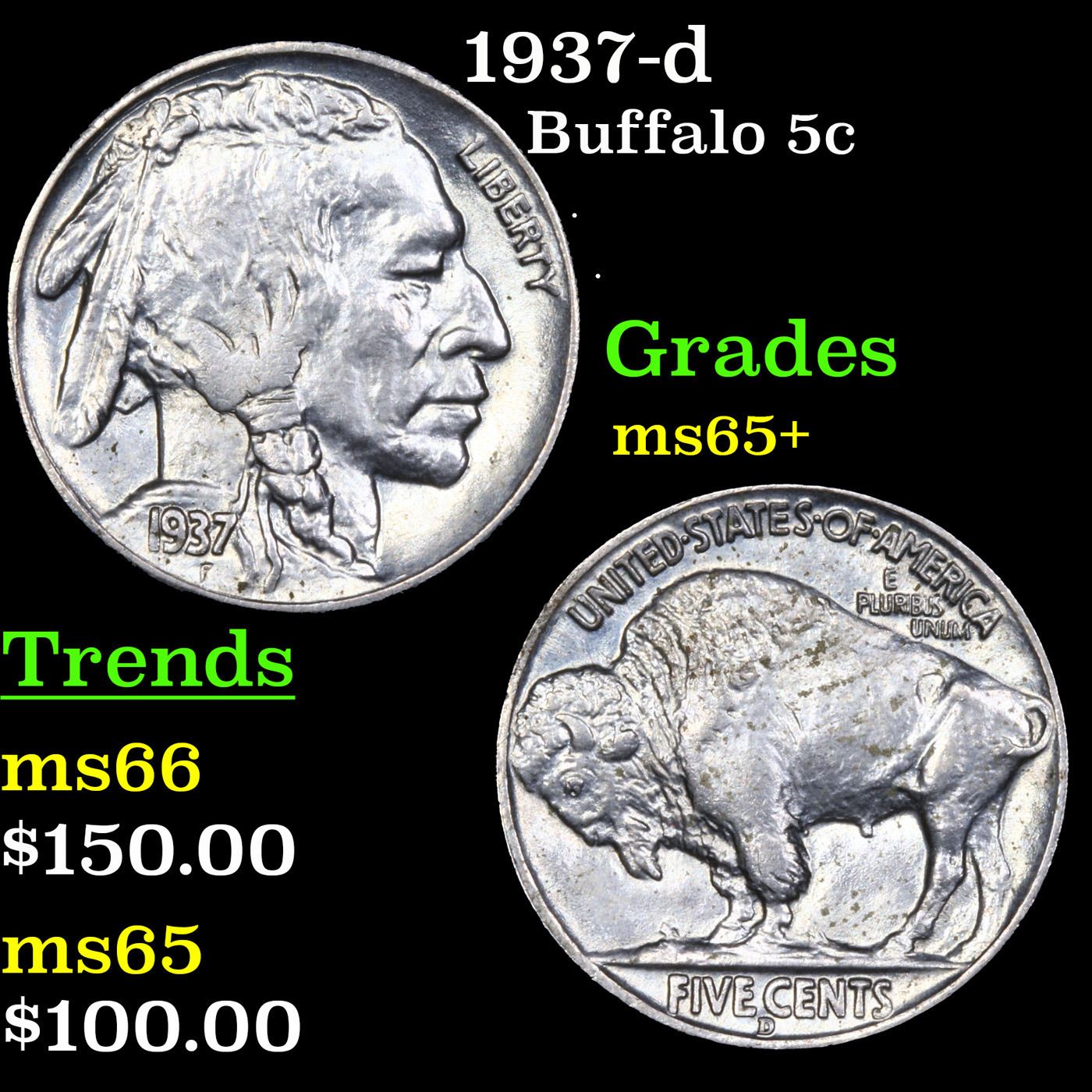 1937-d Buffalo Nickel 5c Grades GEM+ Unc.