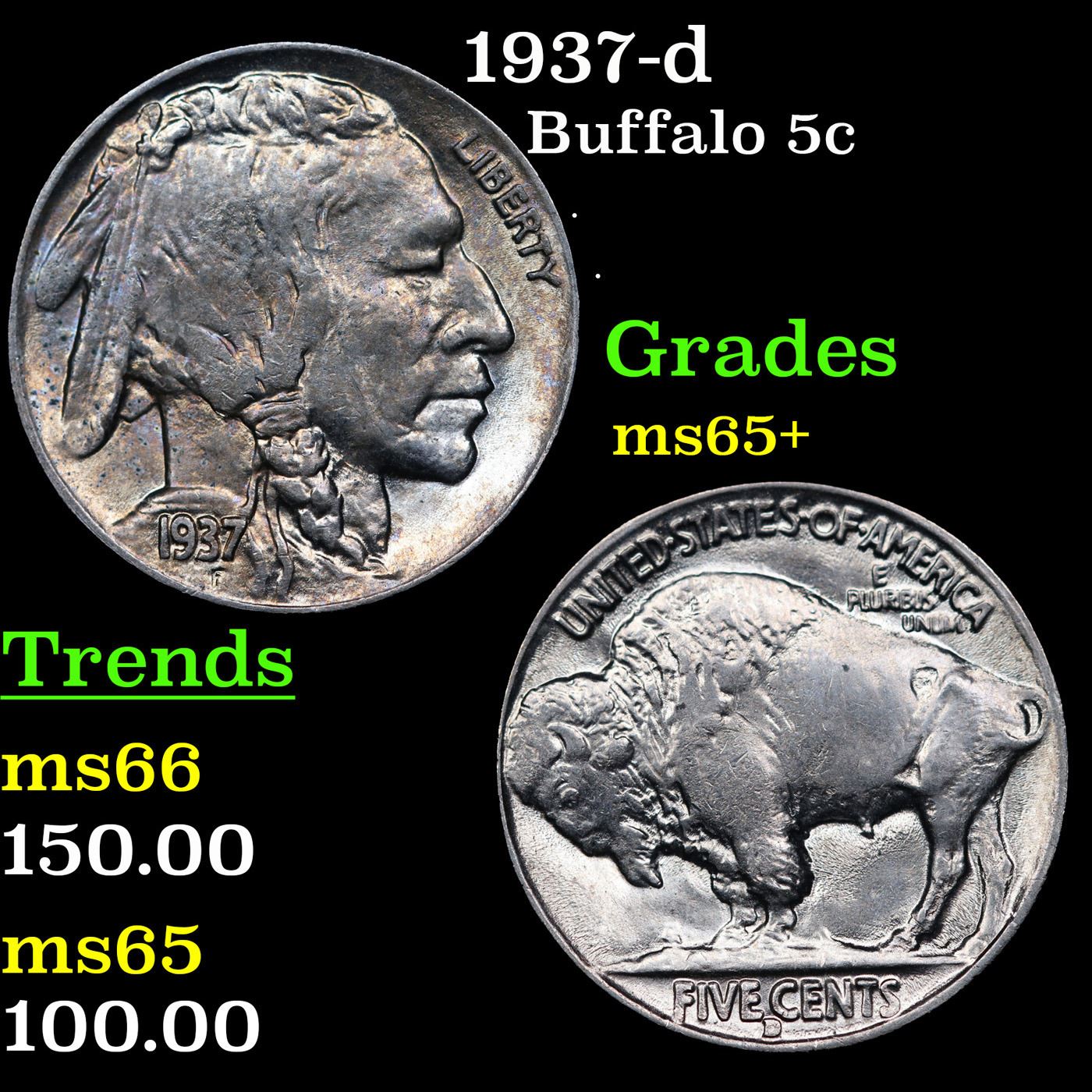 1937-d Buffalo Nickel 5c Grades GEM+ Unc.