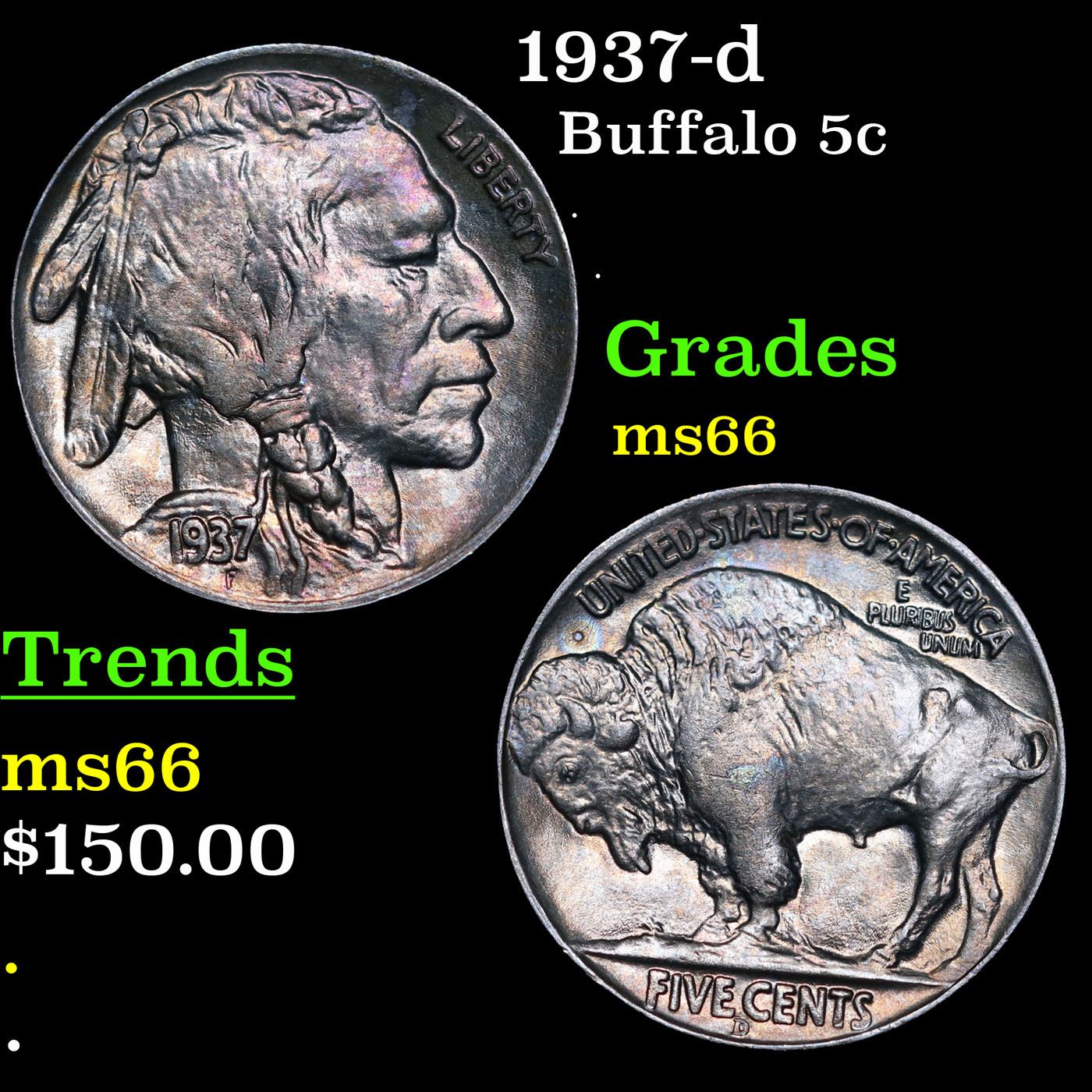 1937-d Buffalo Nickel 5c Grades GEM+ Unc.