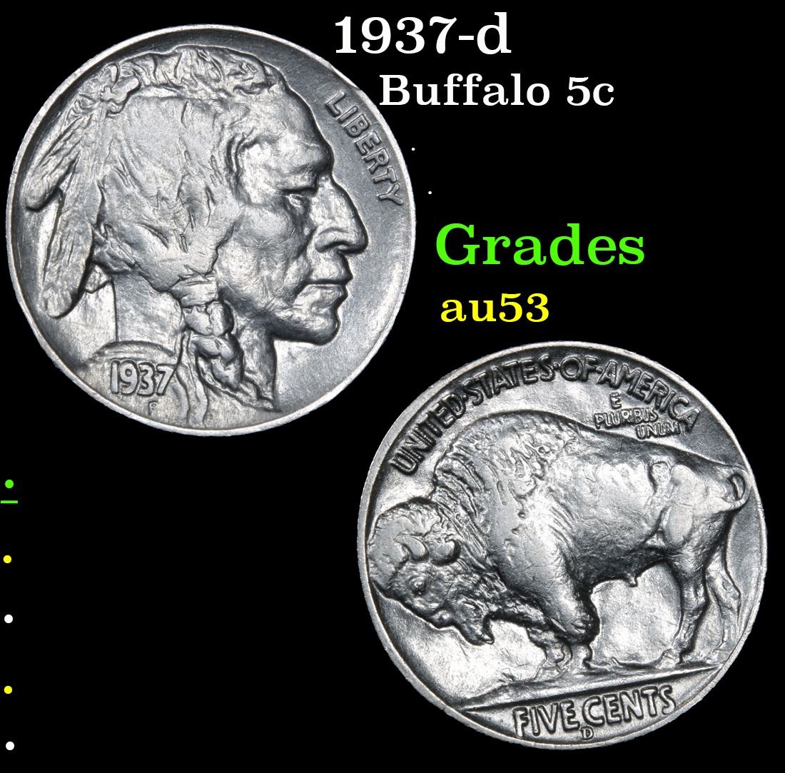 1937-d . . Buffalo Nickel 5c Grades Select AU.