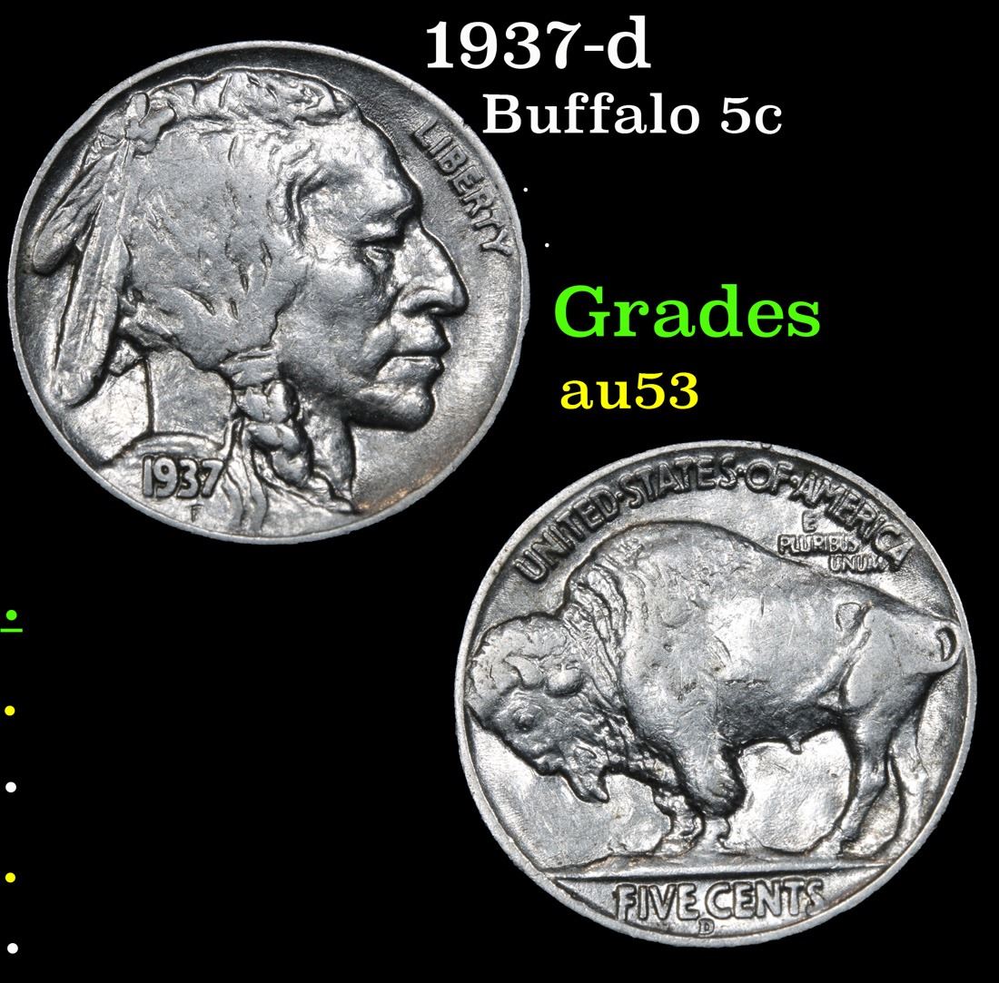 1937-d . . Buffalo Nickel 5c Grades Select AU.