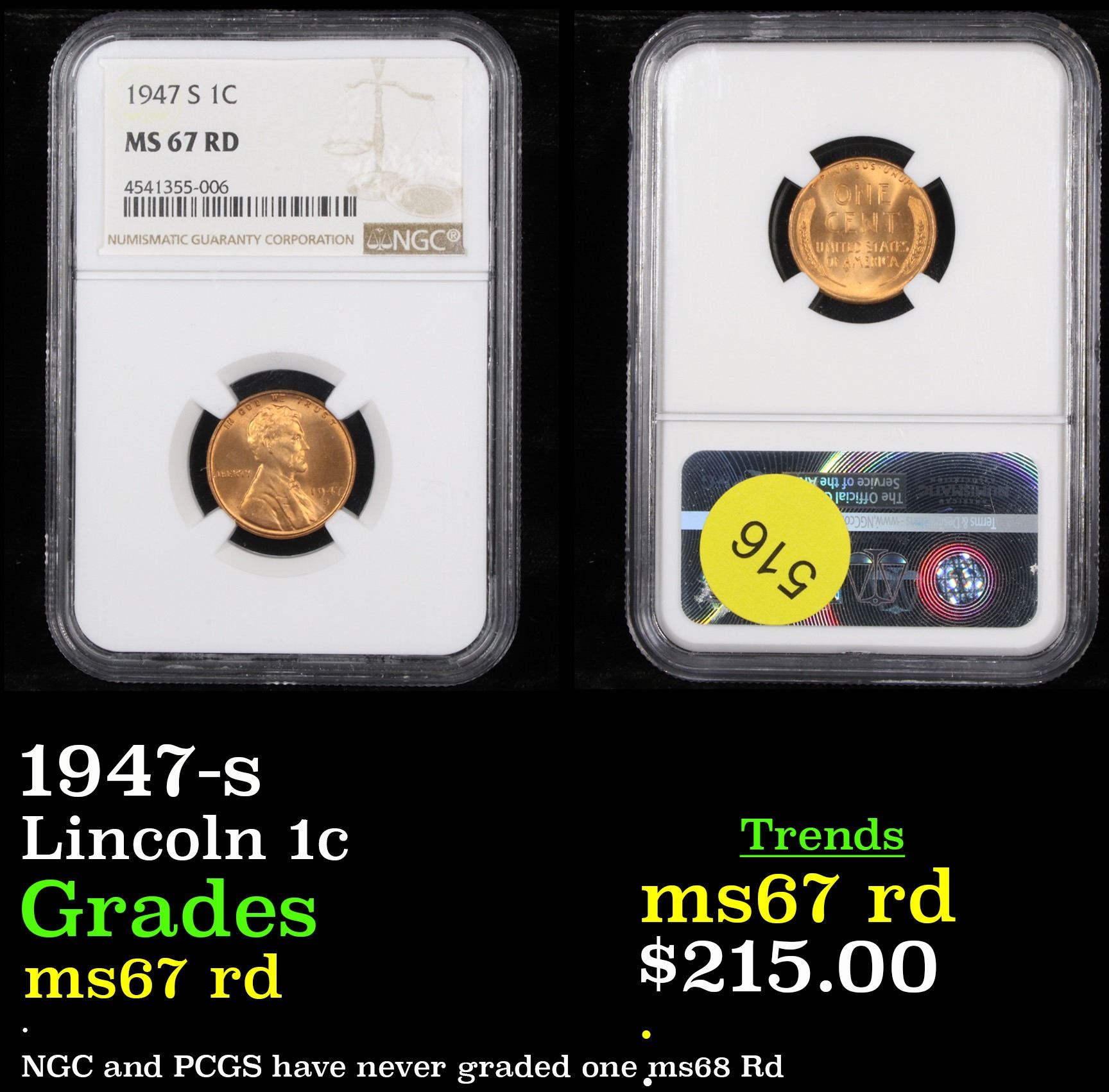 1937-d Lincoln Cent 1c Graded ms66 rd By NGC. 0