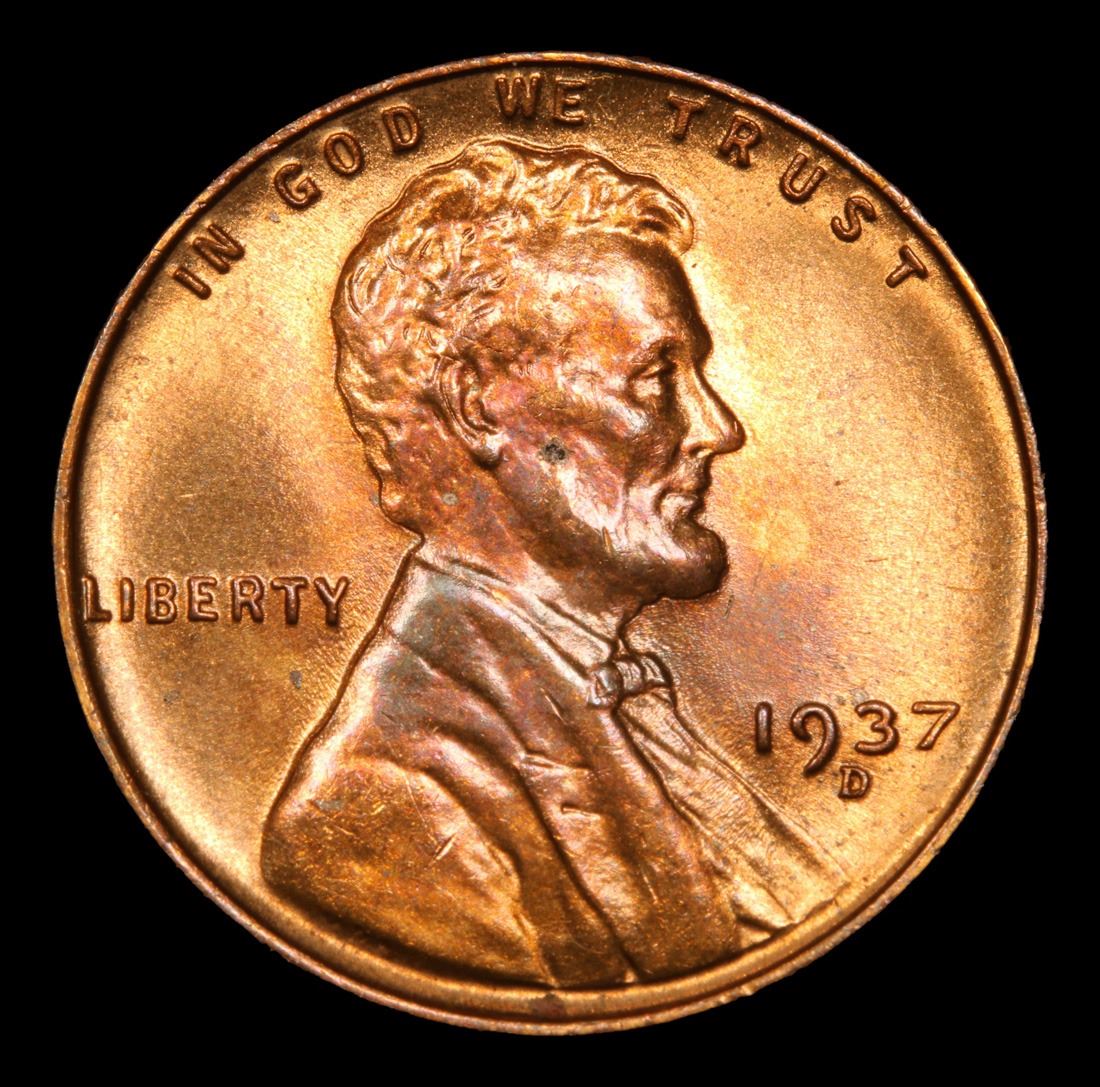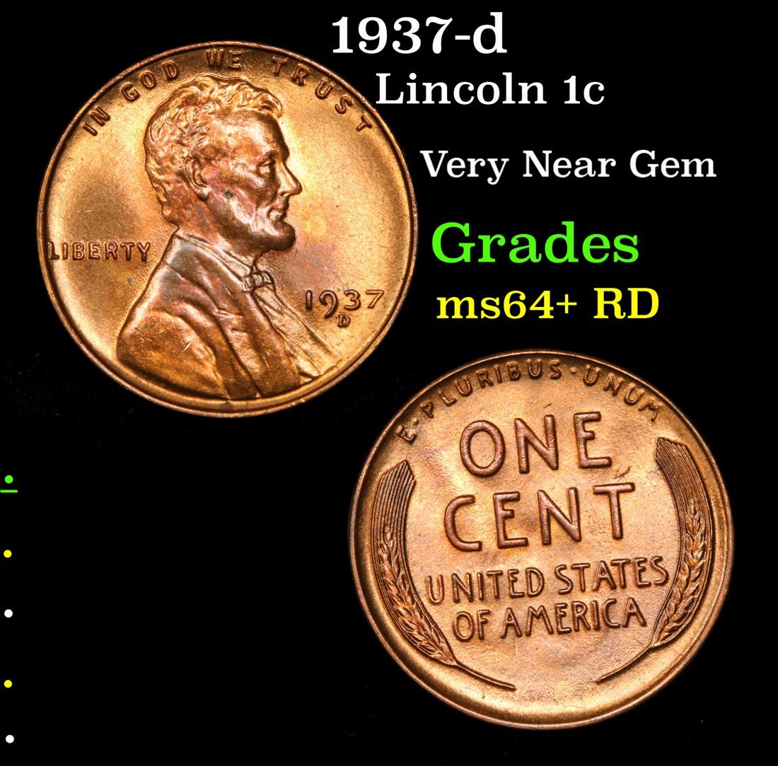 1937-d . Very Near Gem Lincoln Cent 1c Grades Choice+ Unc RD.