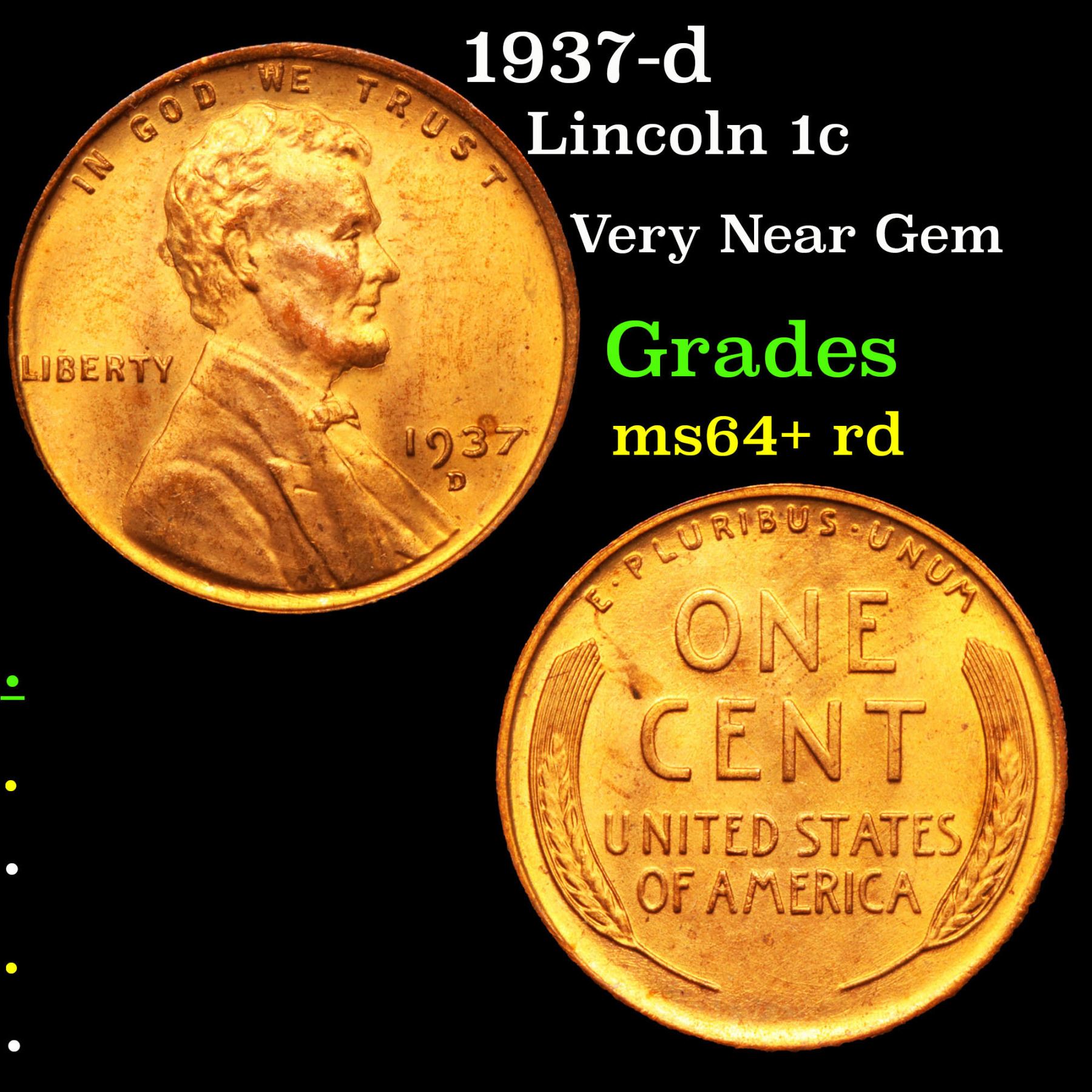 1937-d Lincoln Cent 1c Grades Choice+ Unc RD.