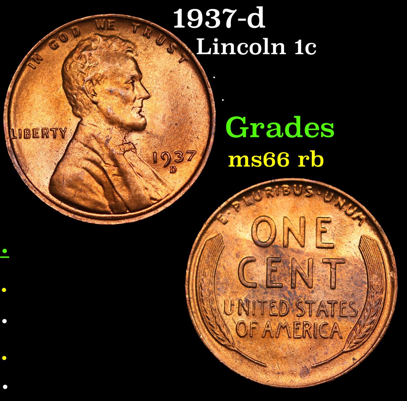 1937-d Lincoln Cent 1c Grades GEM+ Unc RB.