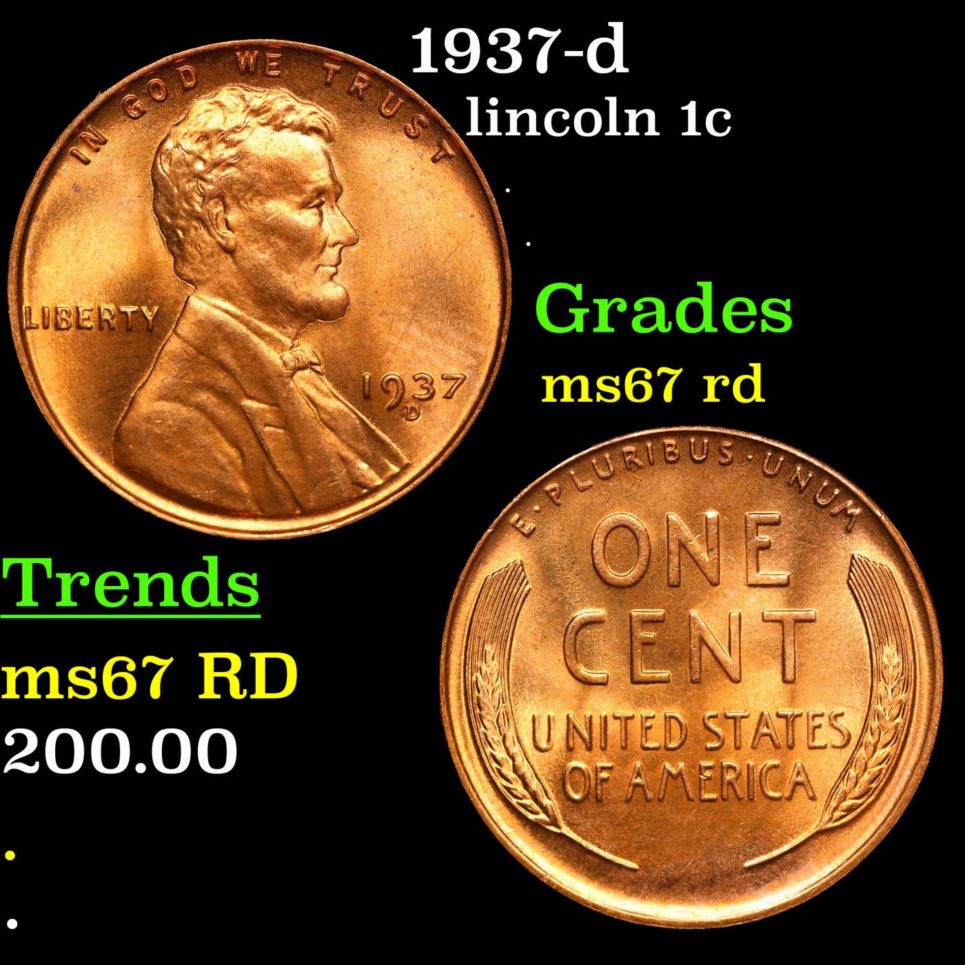 1937-d Lincoln Cent 1c Grades GEM++ Unc RD.