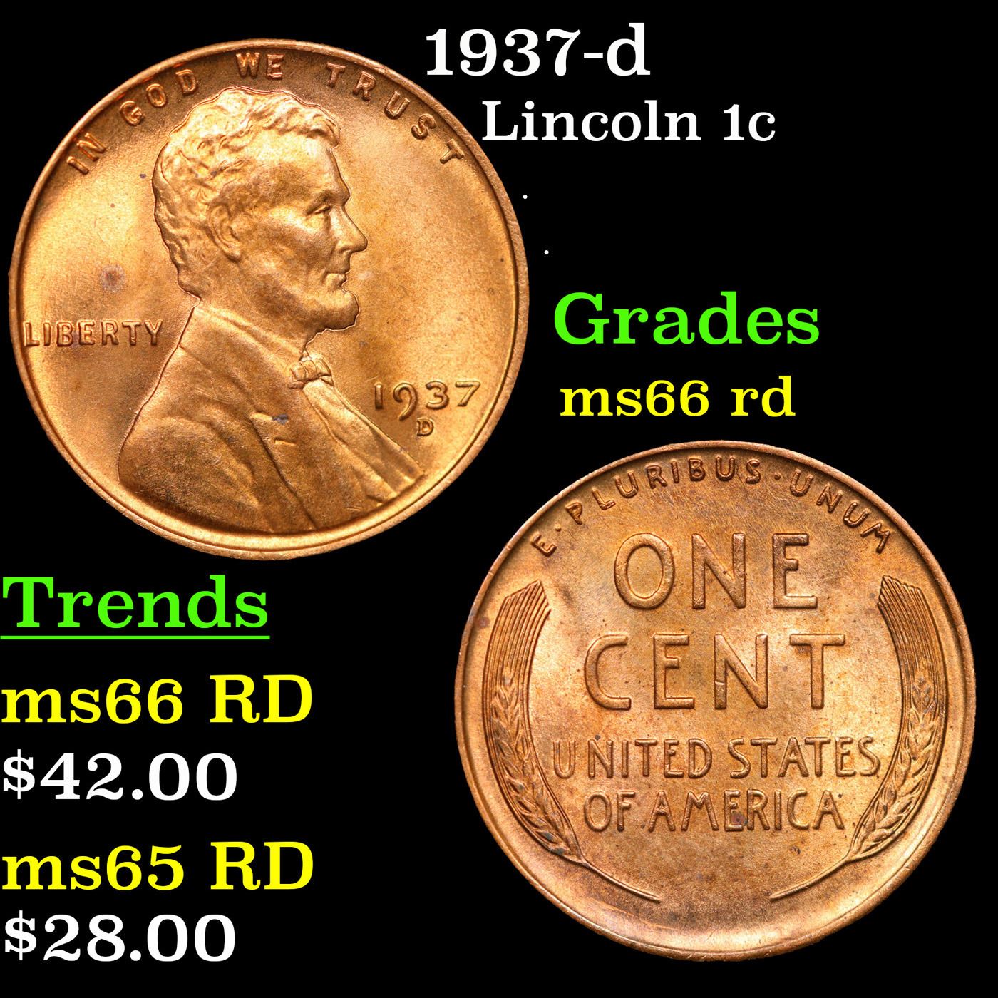 1937-d Lincoln Cent 1c Grades GEM+ Unc RD.