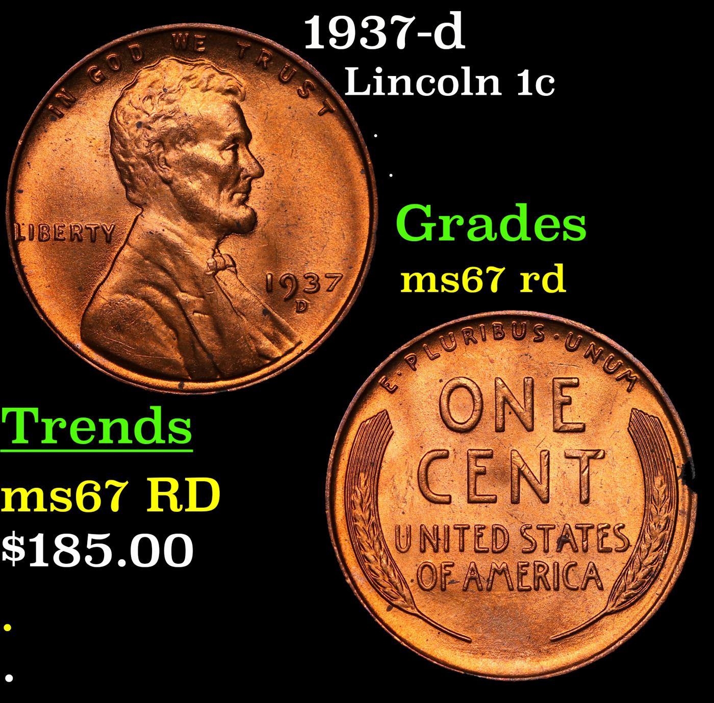 1937-d Lincoln Cent 1c Grades GEM++ Unc RD.