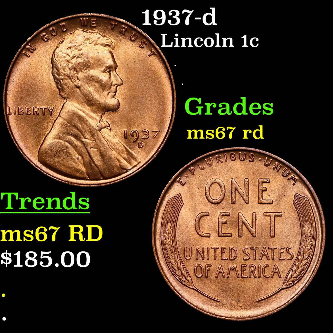 1937-d Lincoln Cent 1c Grades GEM++ Unc RD.