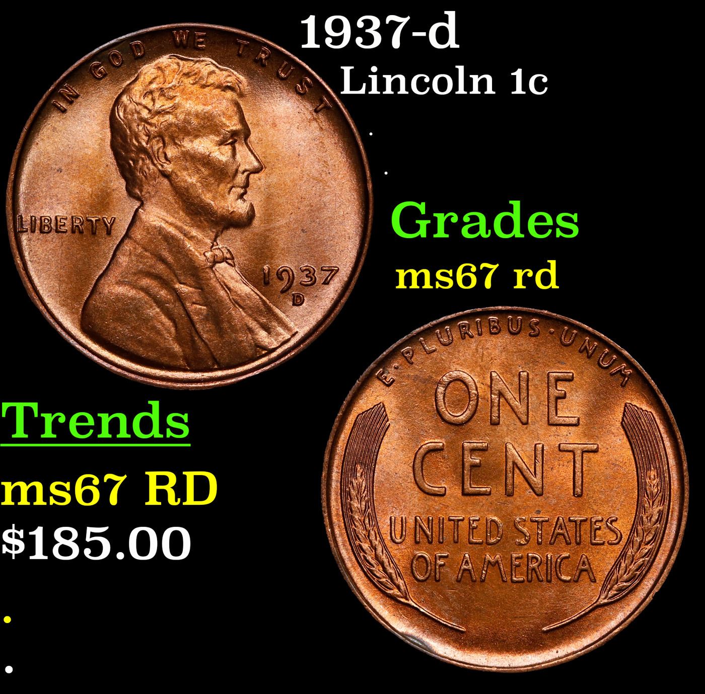 1937-d Lincoln Cent 1c Grades GEM++ Unc RD.