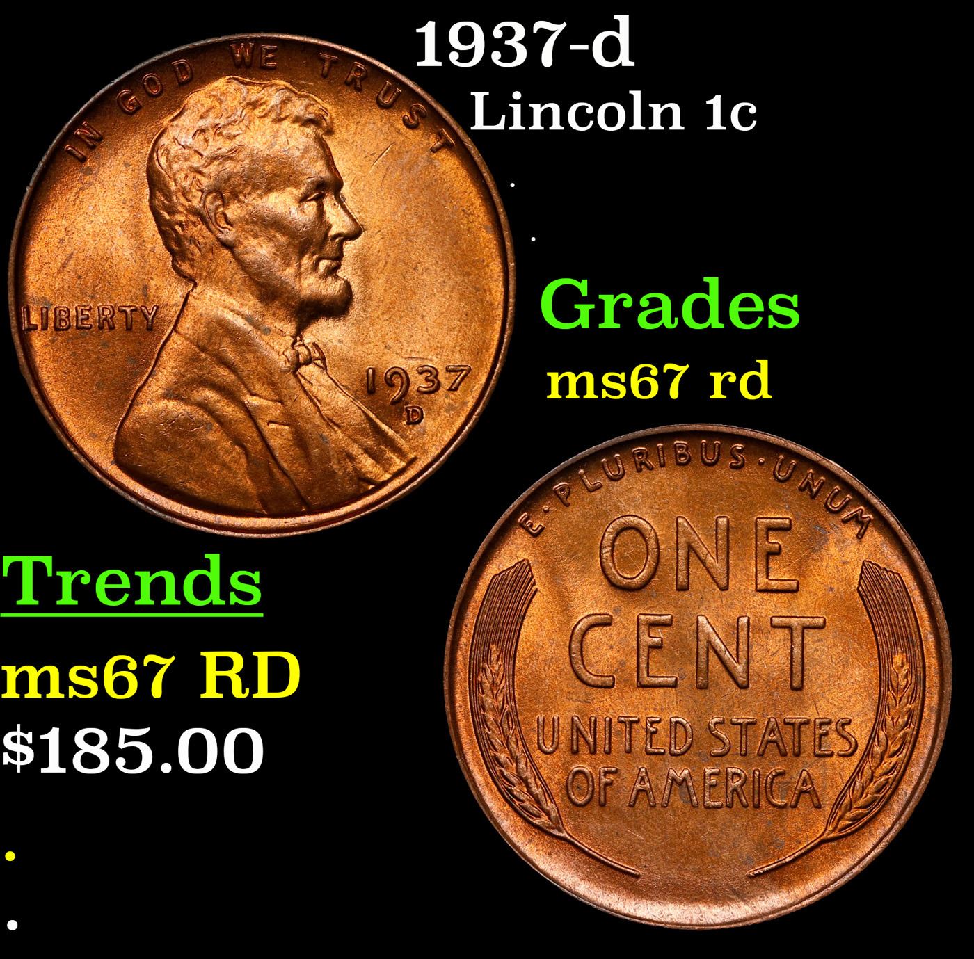 1937-d Lincoln Cent 1c Grades GEM++ Unc RD.