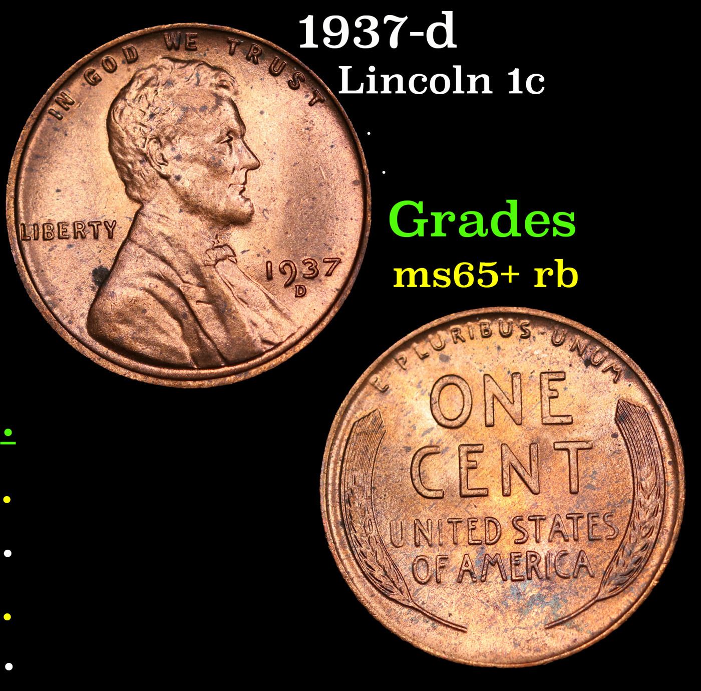 1937-d Lincoln Cent 1c Grades Gem+ Unc RB.