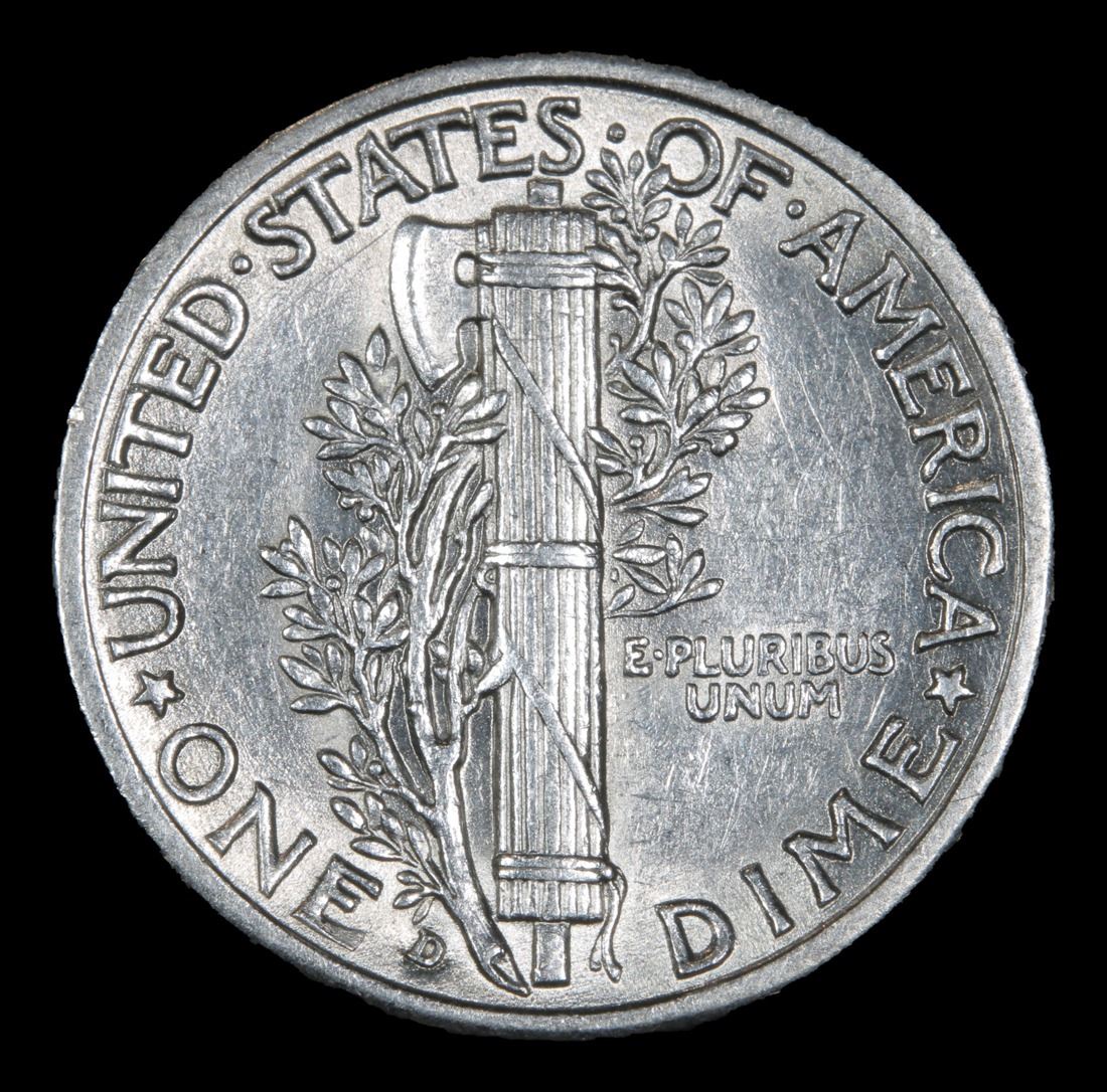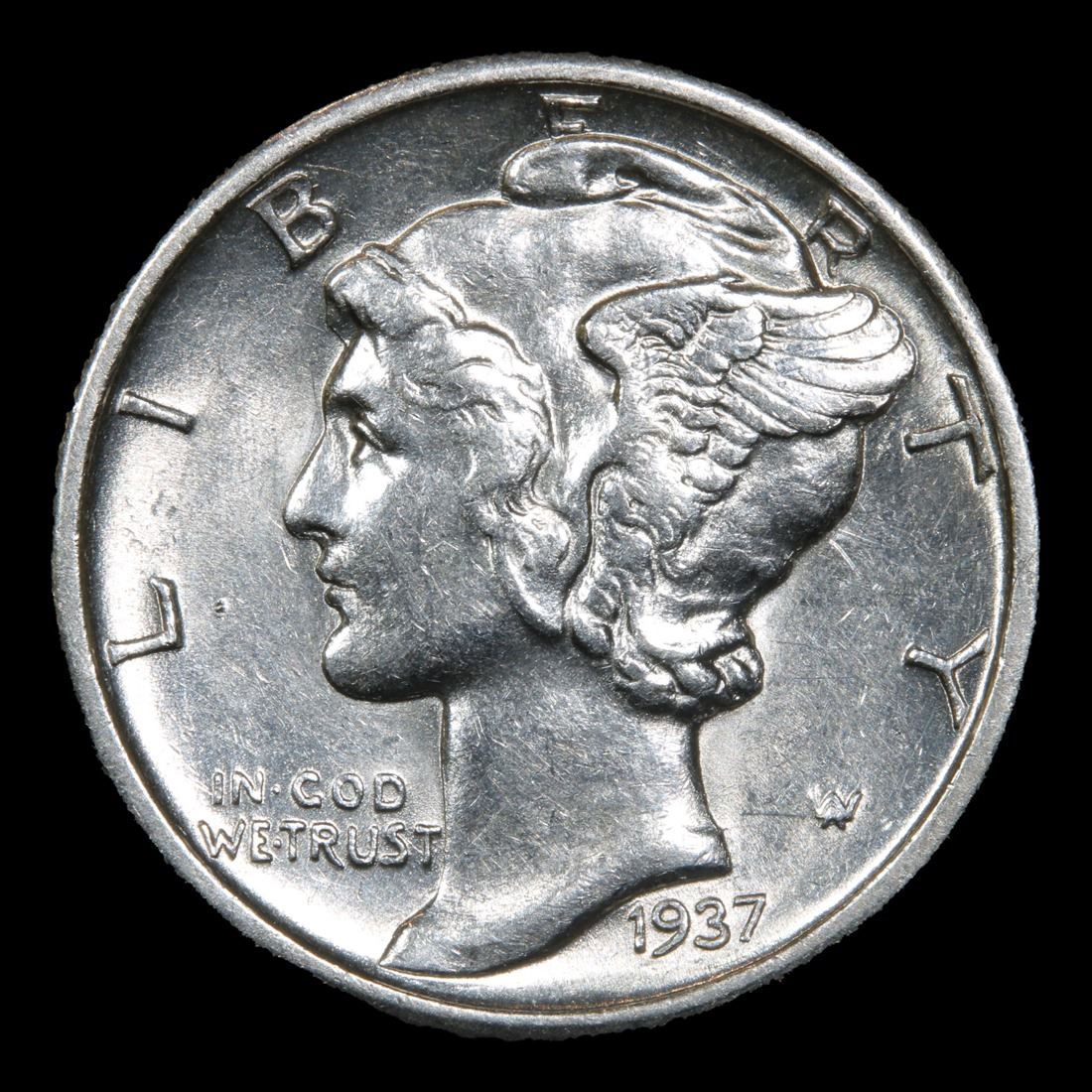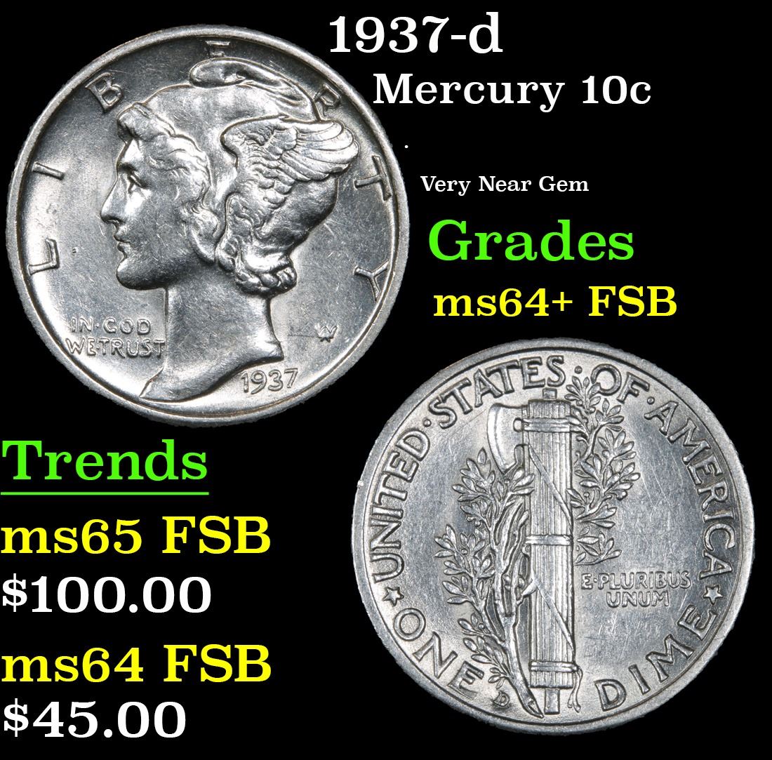 1937-d . Very Near Gem Mercury Dime 10c Grades Choice Unc+ FSB.