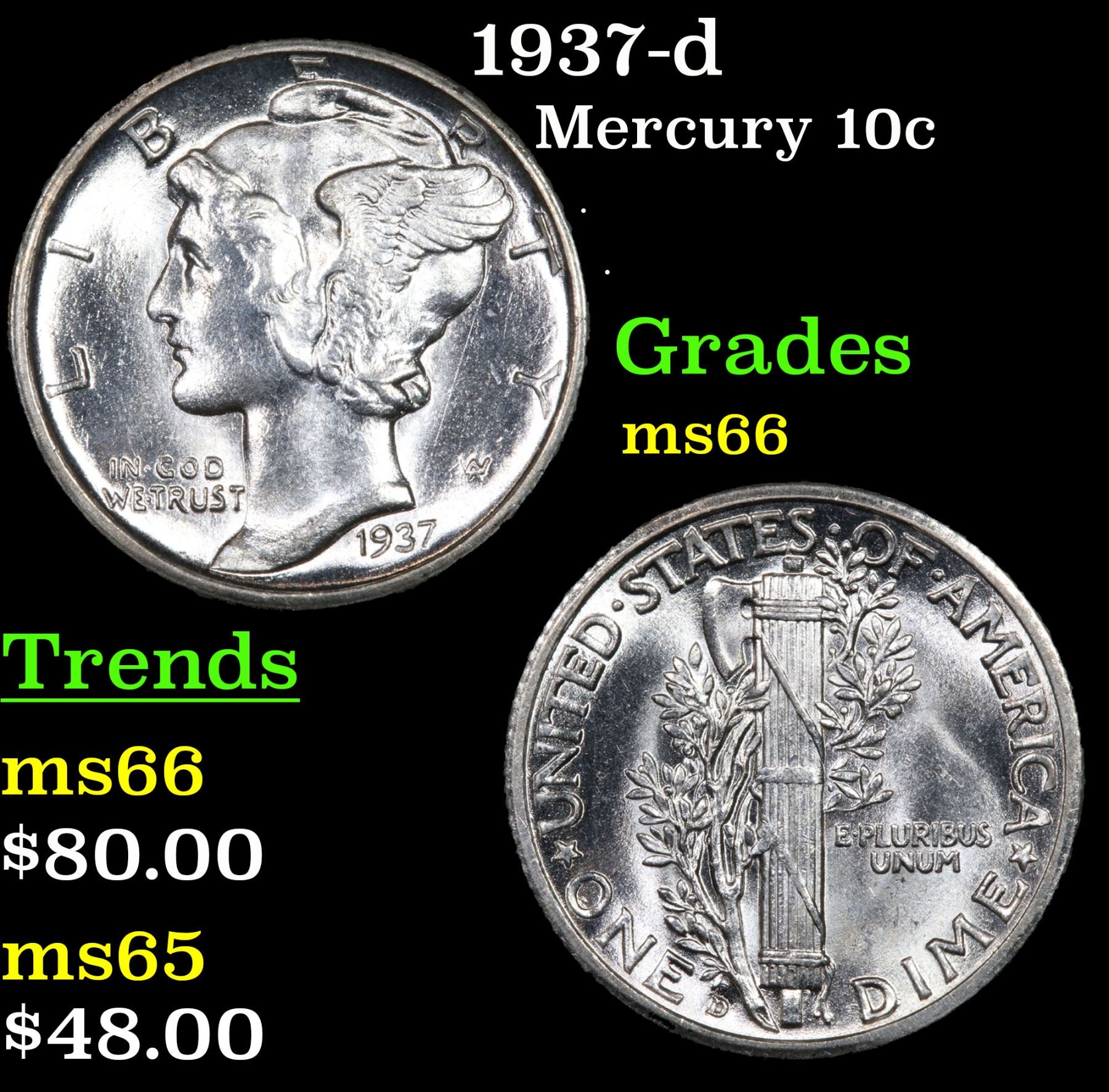 1937-d . . Mercury Dime 10c Grades GEM+ Unc.