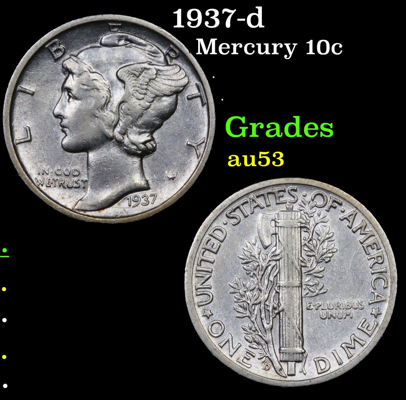 1937-d Mercury Dime 10c Grades Select AU.