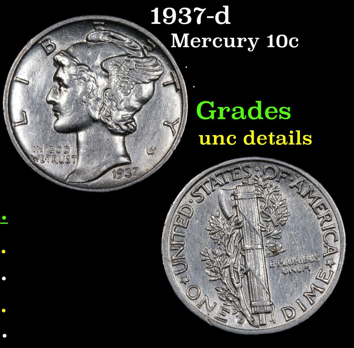 1937-d . . Mercury Dime 10c Grades Unc Details.